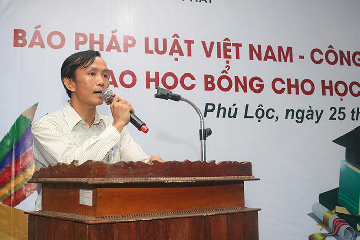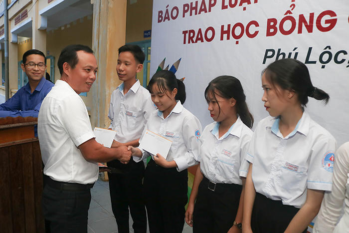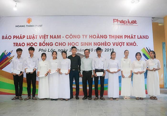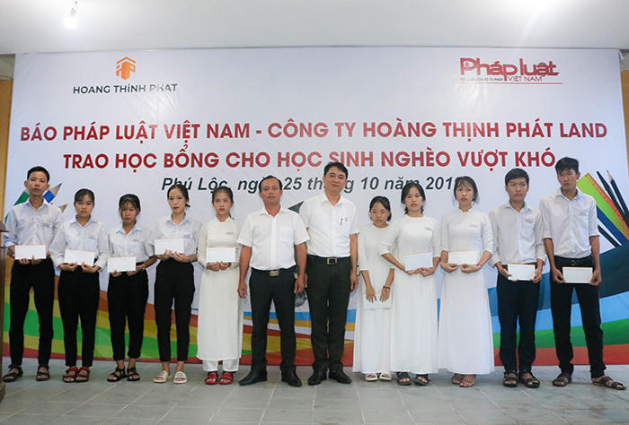 Chiều 25/10, Văn phòng Đại diện Báo Pháp luật Việt Nam khu vực Bình Trị Thiên phối hợp với Công ty Cổ phần Bất động sản Hoàng Thịnh Phát Land vừa trao 30 suất học bổng cho các em học sinh tại trường THPT Thừa Lưu (huyện Phú Lộc, tỉnh Thừa Thiên Huế). Đa số các em học sinh được nhận học bổng đều thuộc diện có hoàn cảnh gia đình khó khăn, mồ côi cha mẹ. Những suất học bổng từ phía các cơ quan, đơn vị nhằm mục đích động viên, khích lệ các em có thêm tinh thần và nghị lực phấn đấu, vươn lên khỏi những khó khăn trong cuộc sống.