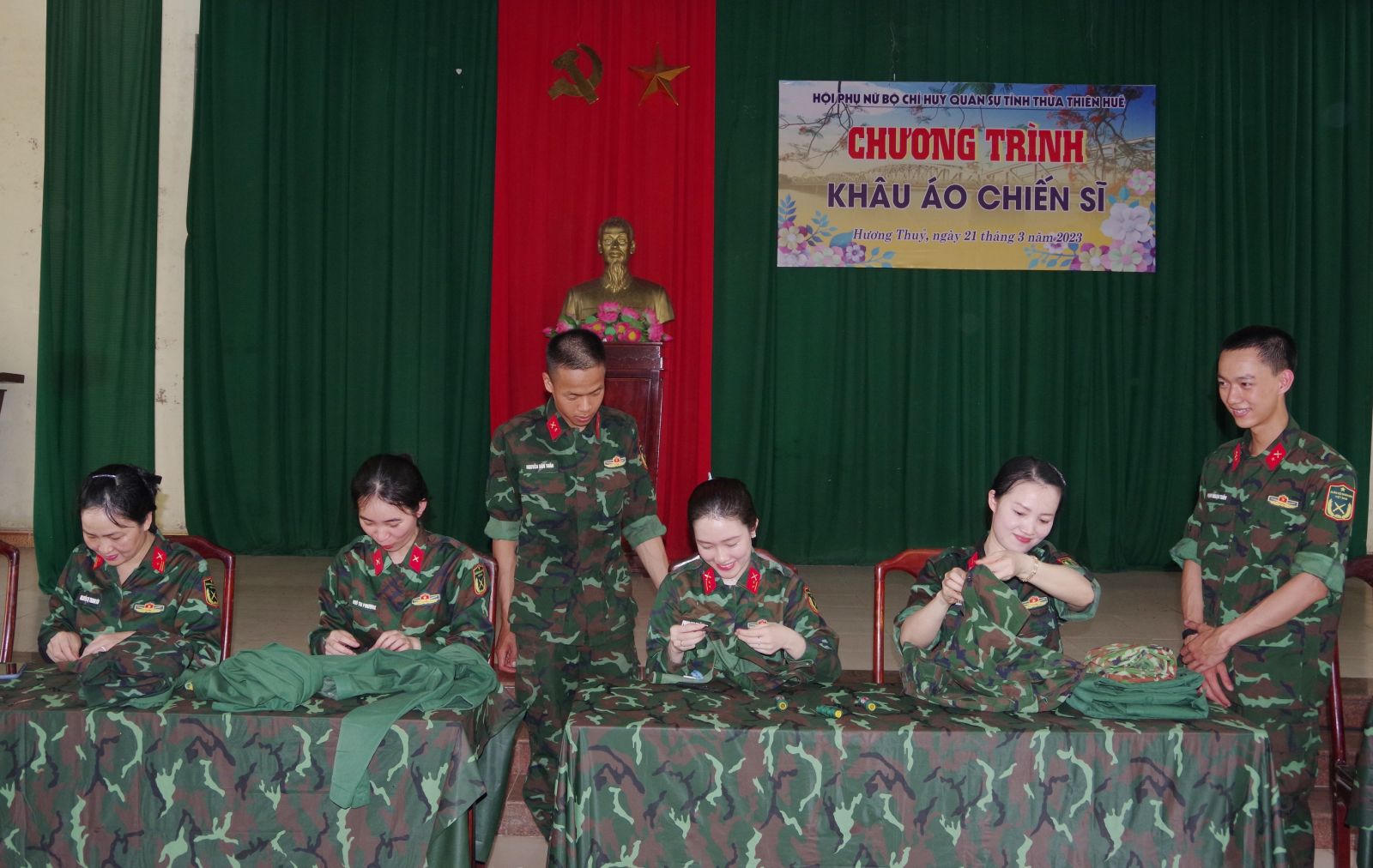 (PLVN) - Để kịp thời động viên, khích lệ tinh thần chiến sĩ mới đang huấn luyện tại Tiểu đoàn 1 (Trung đoàn 6, Bộ CHQS tỉnh Thừa Thiên Huế), Hội Phụ nữ cơ sở Bộ CHQS tỉnh đã phối hợp với Hội Phụ nữ các huyện, thị, thành tổ chức nhiều hoạt động ý nghĩa, trao gửi yêu thương đến bộ đội huấn luyện nơi thao trường nắng gió.