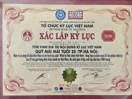 Chính vì thế, Hội đồng Thẩm định của Tổ chức Kỷ lục Việt Nam đã đồng thuận tuyệt đối trong việc bỏ phiếu xác lập và tôn vinh giá trị nội dung hai kỷ lục Quốc gia cho bộ sách “Nhật ký thời chiến Việt Nam”.
