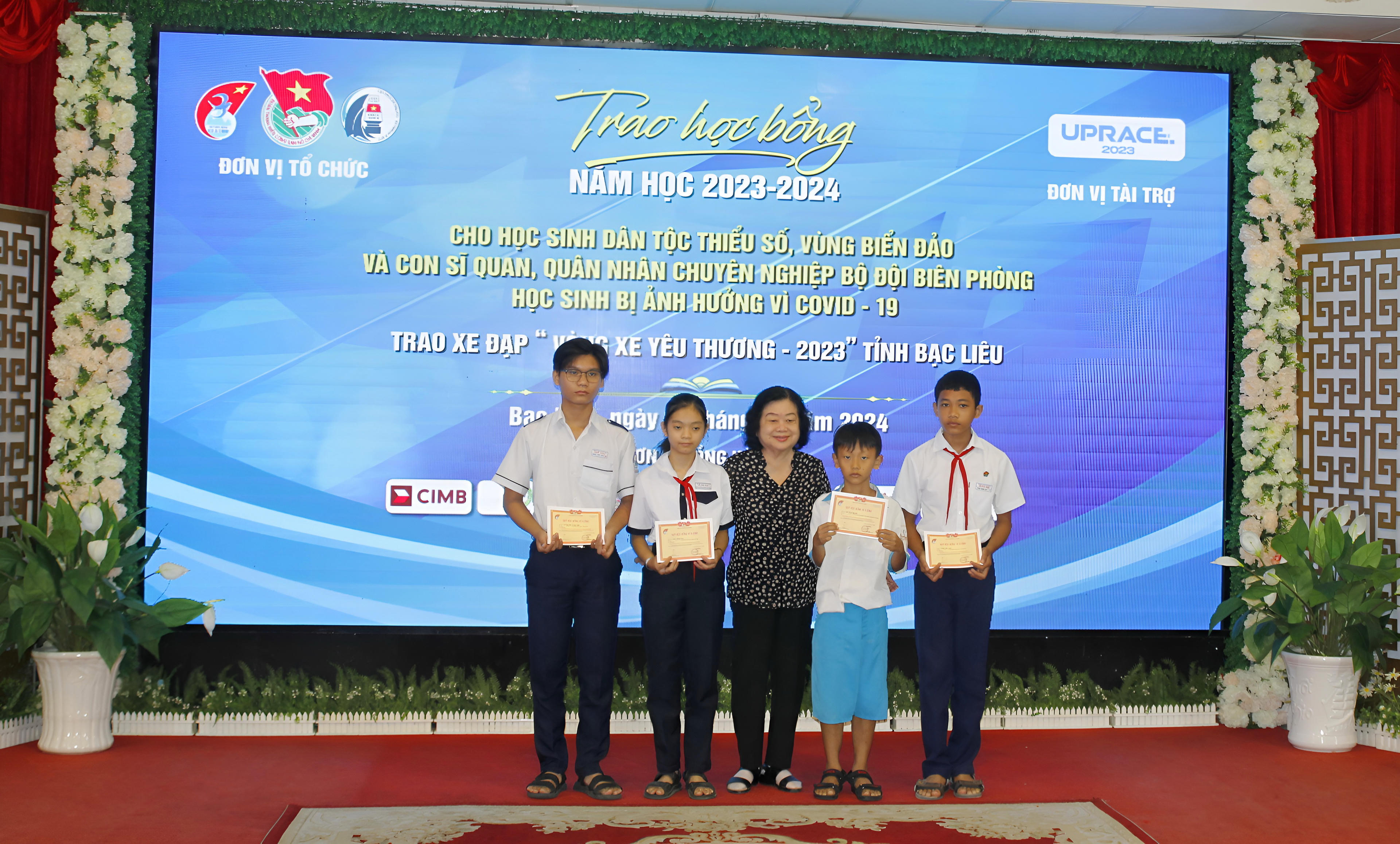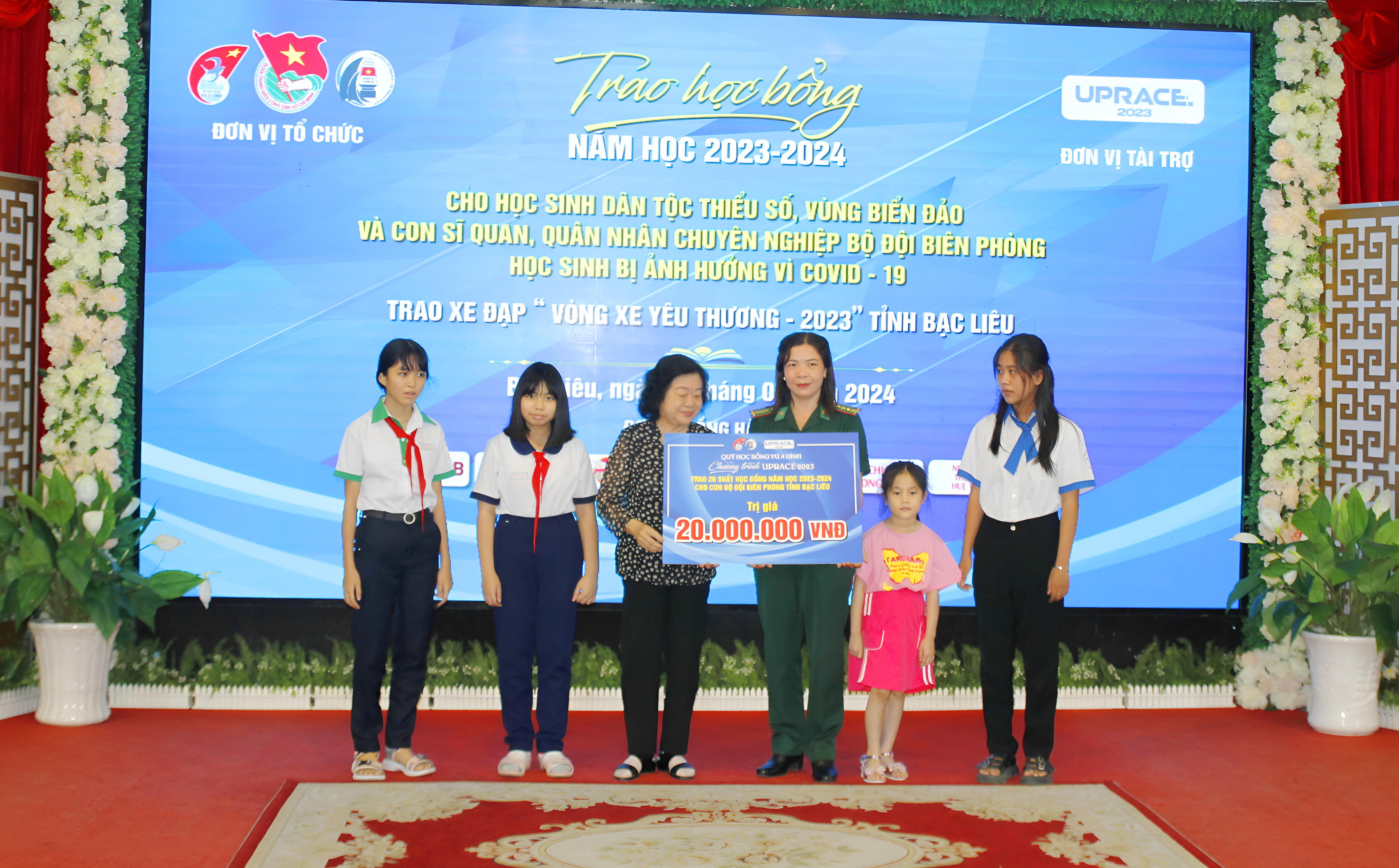 (PLVN) - Ngày 4/1, Ban Thường vụ Tỉnh đoàn, Sở Giáo dục và Đào tạo tỉnh Bạc Liêu phối hợp Quỹ học bổng Vừ A Dính, CLB “Vì Hoàng Sa – Trường Sa thân yêu” tổ chức lễ trao học bổng năm học 2023 – 2024 cho học sinh dân tộc thiểu số và vùng biển đảo, con cán bộ, quân nhân chuyên nghiệp Bộ đội Biên phòng, học sinh bị ảnh hưởng COVID-19 trên địa bàn tại tỉnh Bạc Liêu.