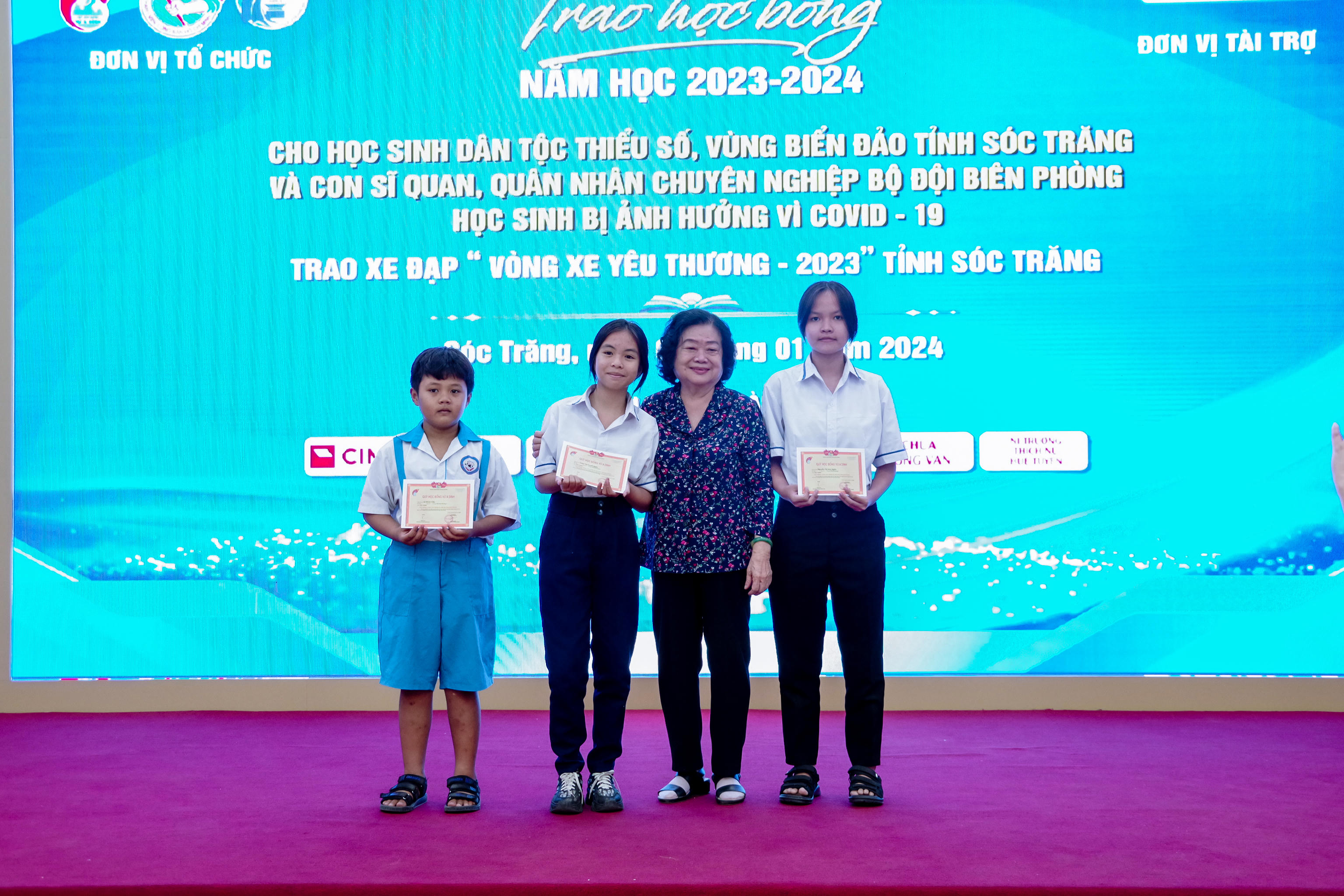 Được biết, Quỹ học bổng “Vừ A Dính” và Câu lạc bộ “Vì Hoàng Sa - Trường Sa thân yêu” đã trao tặng 90 suất học bổng (01 triệu đồng/suất) Vừ A Dính và CLB “Vì Hoàng Sa – Trường Sa thân yêu” cho các em học sinh dân tộc thiểu số có hoàn cảnh khó khăn; 03 suất học bổng (6 triệu đồng/suất/năm học) Vòng tay nhân ái cho các em học sinh bị ảnh hưởng bởi dịch Covid-19; Và 20 suất học bổng (1 triệu đồng/suất) dành cho con của cán bộ BĐBP tỉnh Sóc Trăng.