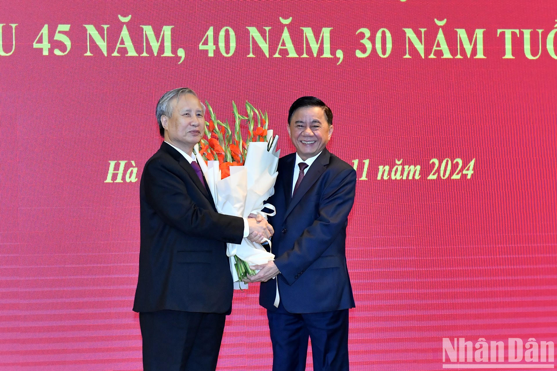 Tổng Bí thư Tô Lâm tặng hoa chúc mừng đồng chí Trần Quốc Vượng.