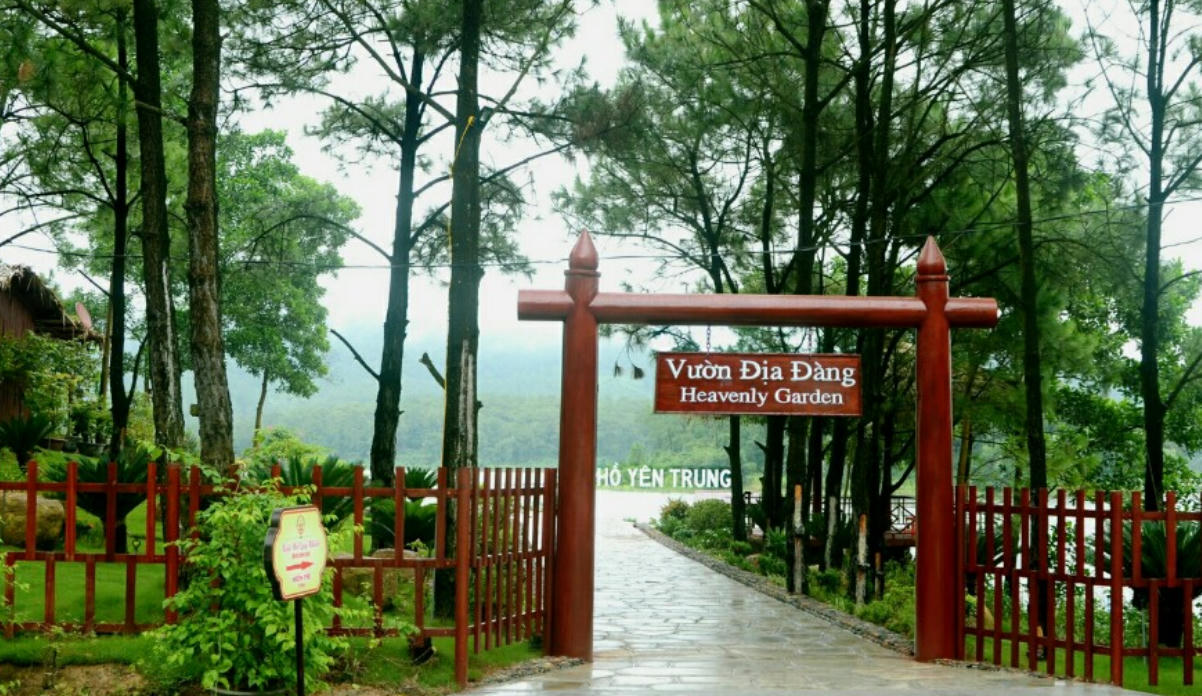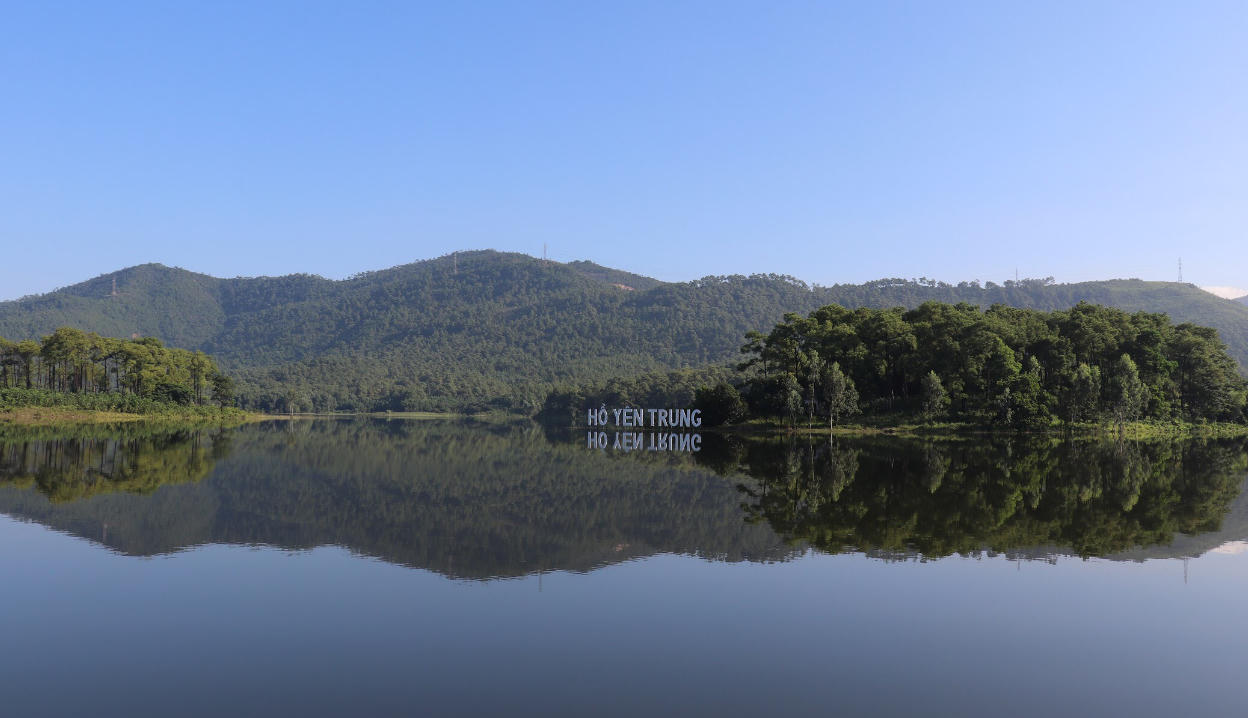 Ngay từ con đường nhỏ đi vào, du khách như lạc vào một không gian hoàn toàn khác với thành phố ồn ào, náo nhiệt. Ấn tượng đầu tiên khi đến nơi đây là một màu xanh mát mắt của những rặng thông mã vỹ trải dài hai bên đường. Khung cảnh yên bình, xanh mát của hồ Yên Trung dần hiện ra. Hồ rộng, mặt nước phẳng lặng, xanh mát, giữa hồ là những đảo đất nhỏ được phủ cây xanh khiến bạn như có cảm giác đang lạc vào một không gian đầy mê hoặc.