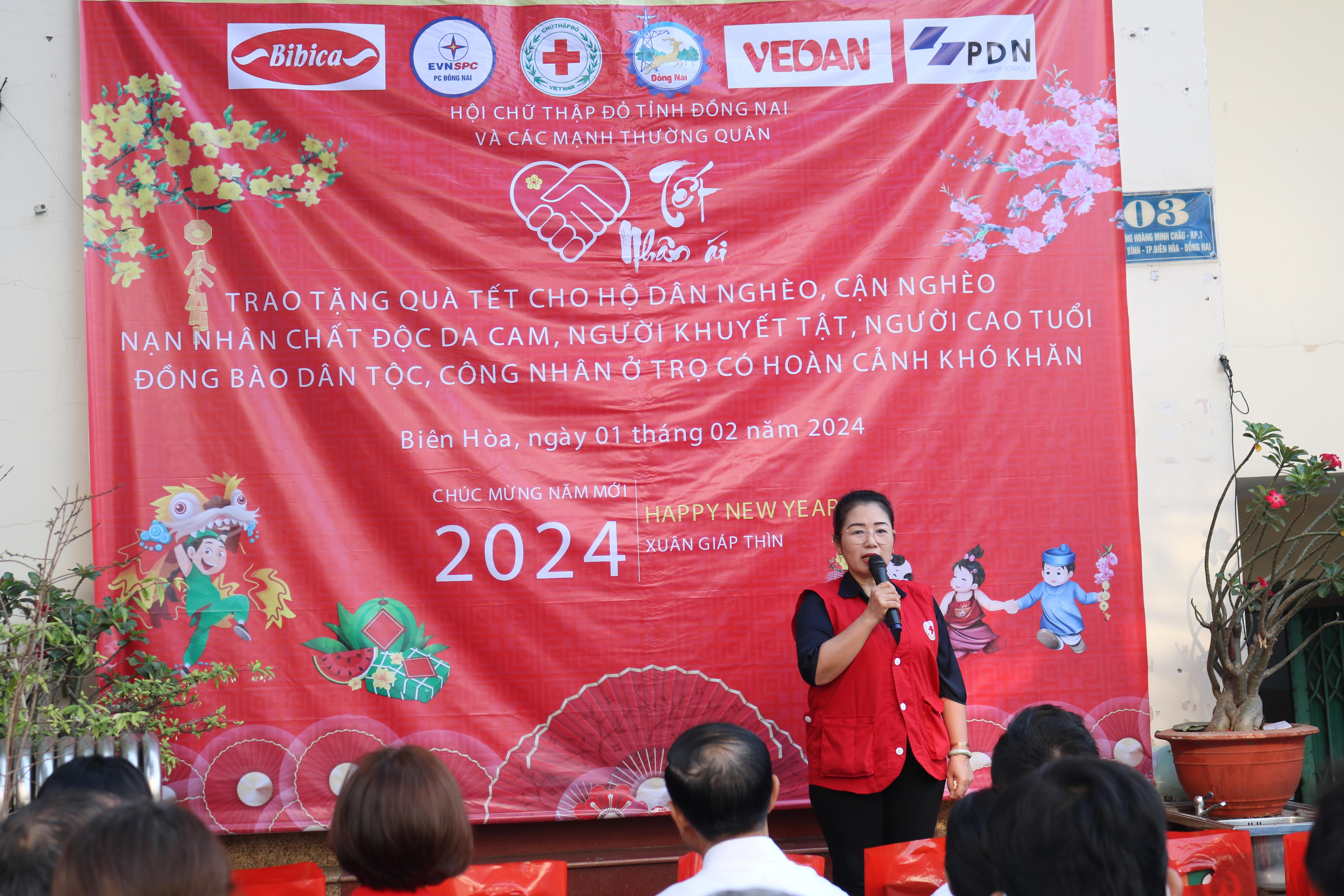 Bà Đỗ Thị Phước Thiện, Chủ tịch Hội chữ thập đỏ Đồng Nai cho biết, đây là những phần quà chứa đựng tình yêu thương của các mạnh thường quân, các doanh nghiệp với mong muốn đem Tết đến với mọi nhà, nhất là những gia đình có hoàn cảnh đặc biệt khó khăn, góp phần nhỏ giúp những gia đình này đón một cái Tết cổ truyền tươi vui, hạnh phúc.