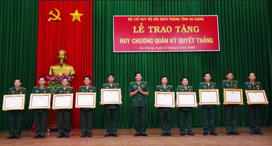Cùng ngày, Bộ đội Biên phòng tỉnh An Giang thừa ủy quyền trao Huy chương Quân kỳ quyết thắng của Chủ tịch nước Cộng hòa Xã hội chủ nghĩa Việt Nam cho 13 đồng chí đã có thành tích 25 năm phục vụ liên tục trong lực lượng vũ trang nhân dân, góp phần xây dựng Quân đội, củng cố quốc phòng và bảo vệ Tổ quốc.