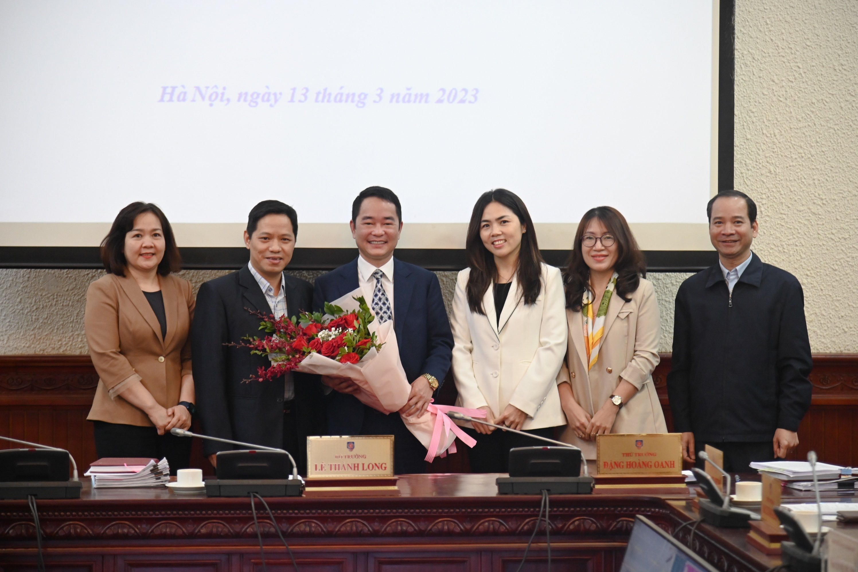 Bộ trưởng Lê Thành Long trao Quyết định bổ nhiệm cho đồng chí Vũ Hoài Nam và đồng chí Vũ Hồng Thúy. |