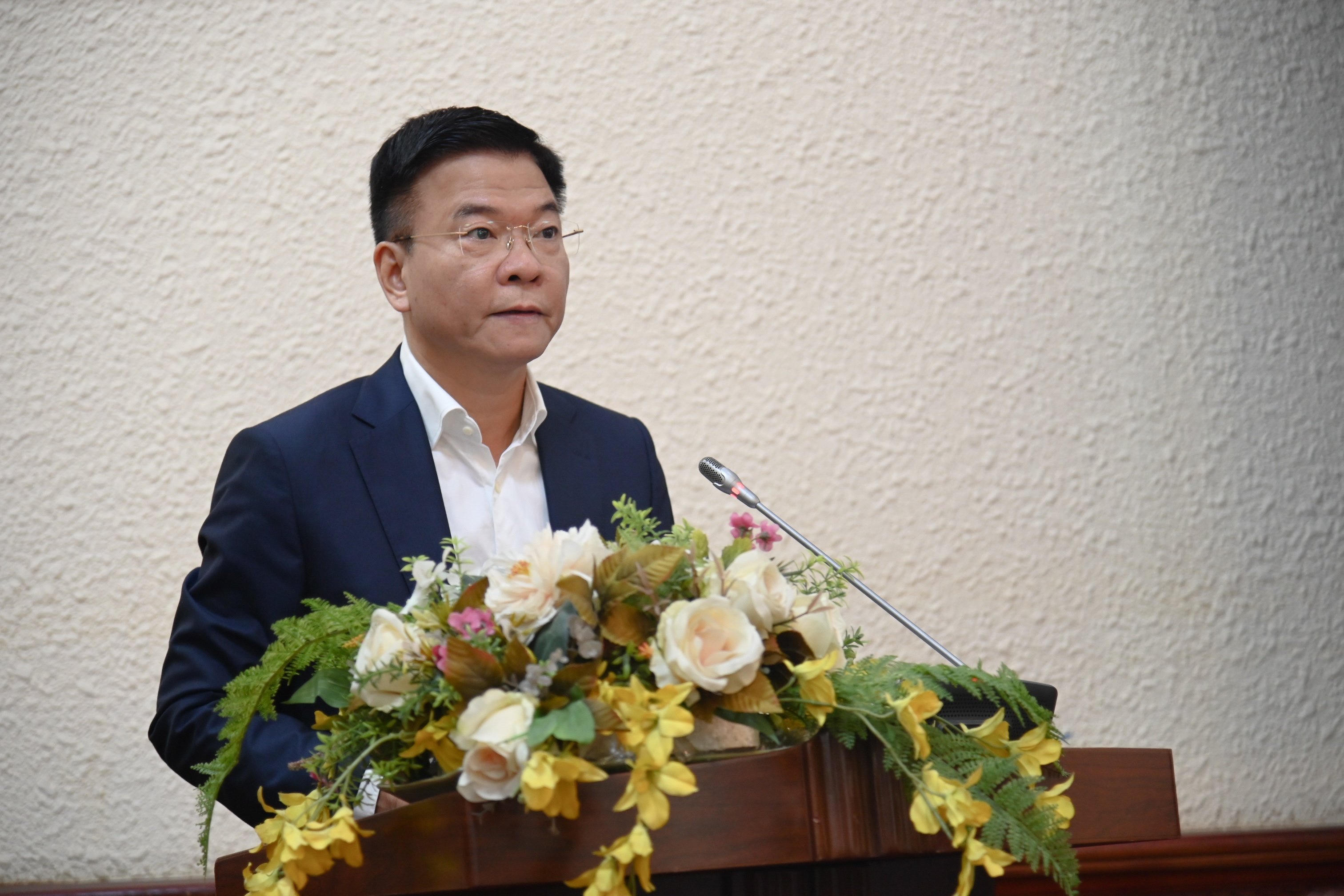 Bộ trưởng Lê Thành Long phát biểu giao nhiệm vụ. |