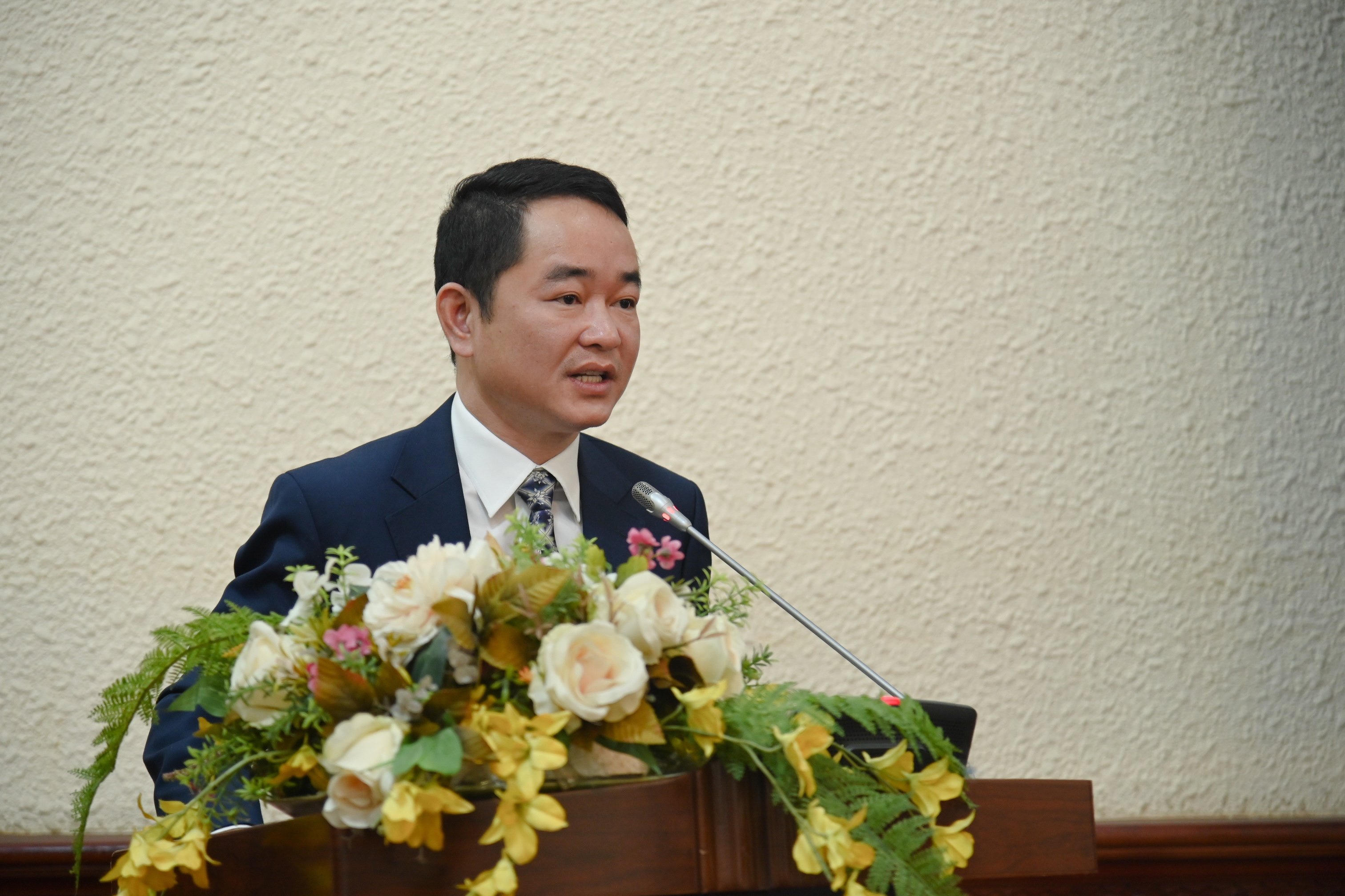 Tổng biên tập Báo Pháp luật Việt Nam Vũ Hoài Nam phát biểu nhận nhiệm vụ. |