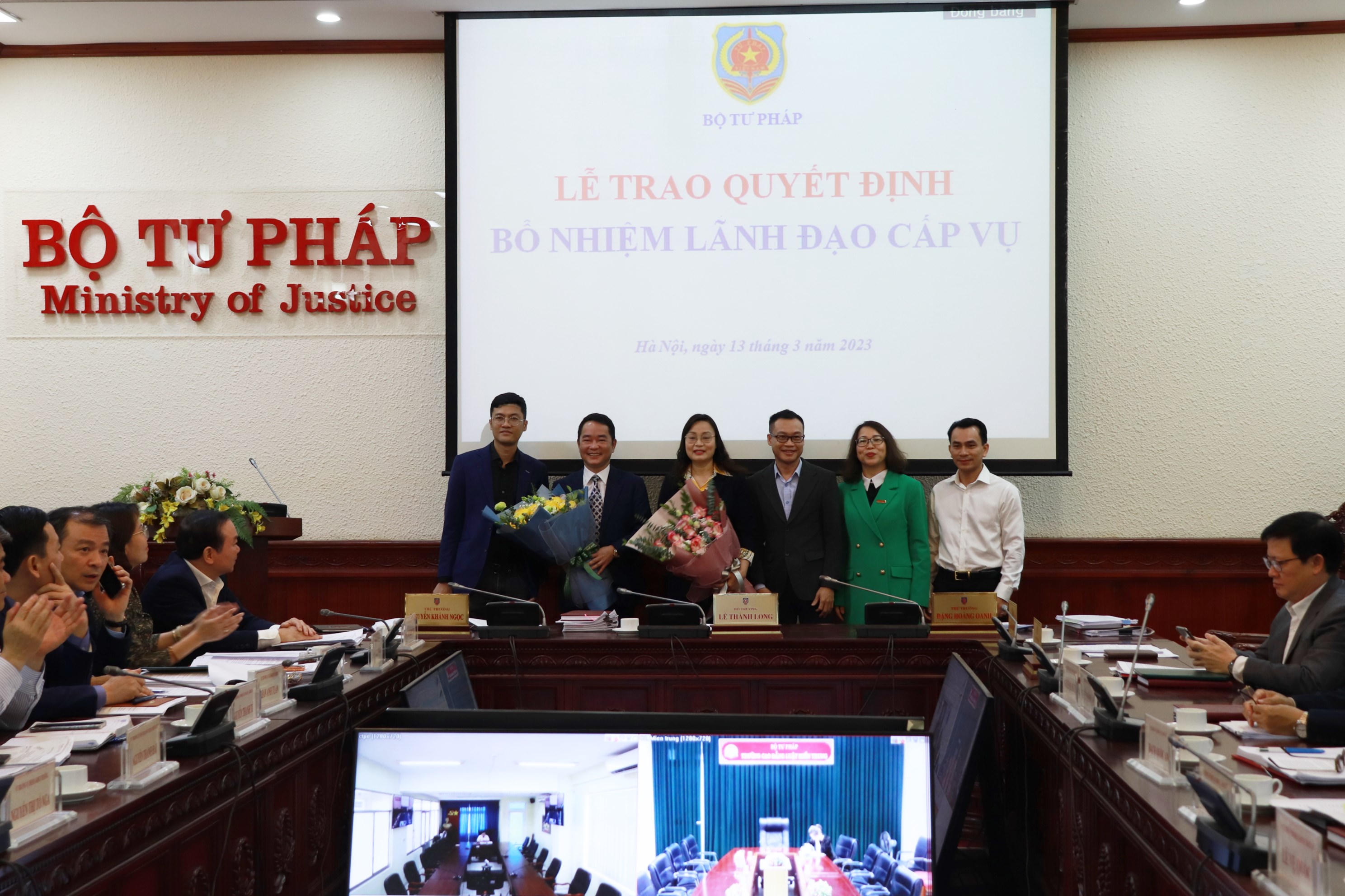 Tập thể Ban Cán sự Đảng, Lãnh đạo Bộ Tư pháp chúc mừng 2 đồng chí được bổ nhiệm. |
