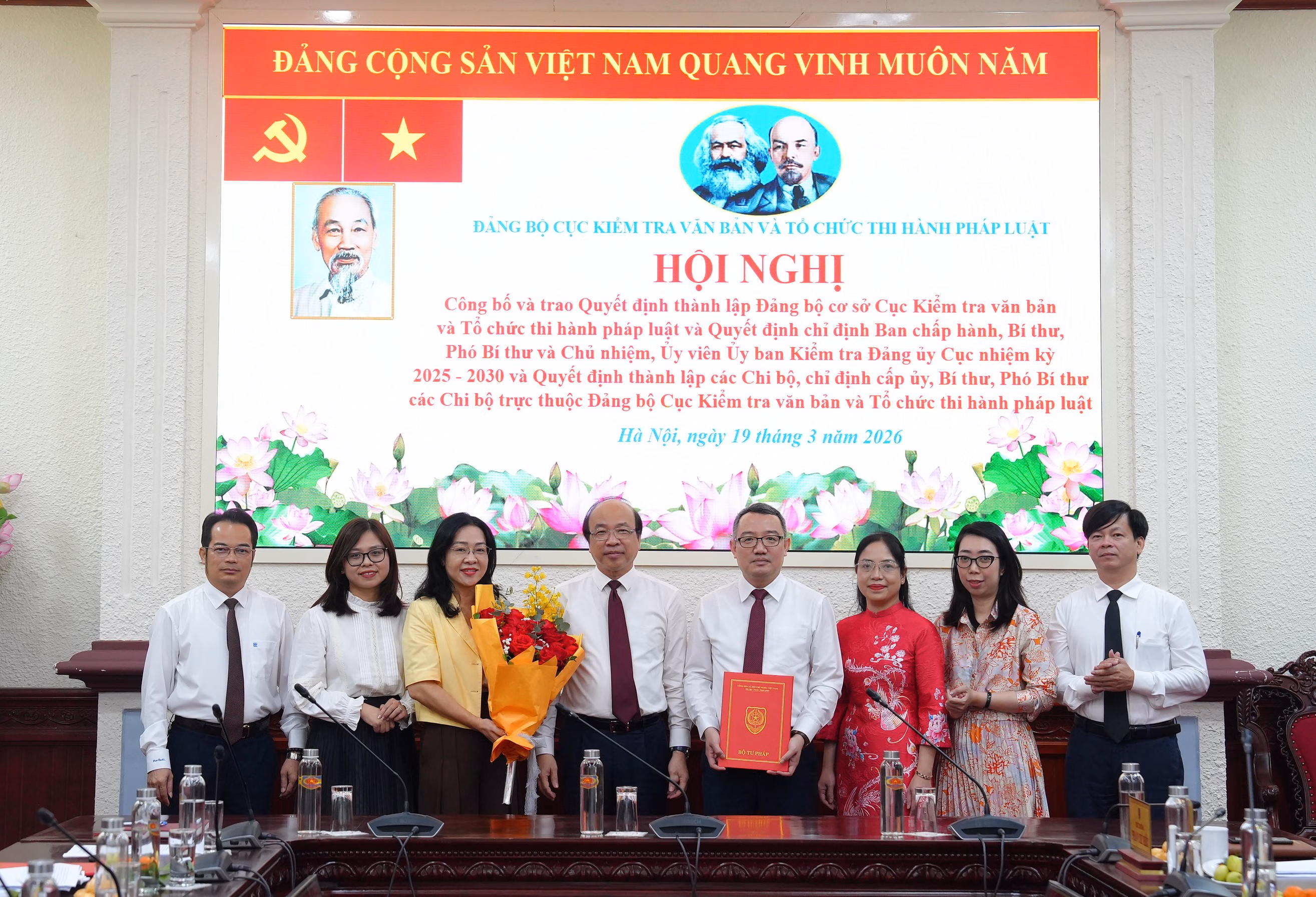 Sáng 19/3, Đảng bộ Cục Kiểm tra văn bản và Tổ chức thi hành pháp luật tổ chức Hội nghị Công bố và trao Quyết định thành lập Đảng bộ cơ sở Cục Kiểm tra văn bản và Tổ chức thi hành pháp luật và Quyết định chỉ định Ban chấp hành, Bí thư, Phó Bí thư và Chủ nhiệm, Ủy viên Ủy ban Kiểm tra Đảng ủy Cục nhiệm kỳ 2025-2030 và Quyết định thành lập các Chi bộ, chỉ định cấp ủy, Bí thư, Phó Bí thư các Chi bộ trực thuộc Đảng bộ Cục Kiểm tra văn bản và Tổ chức thi hành pháp luật.