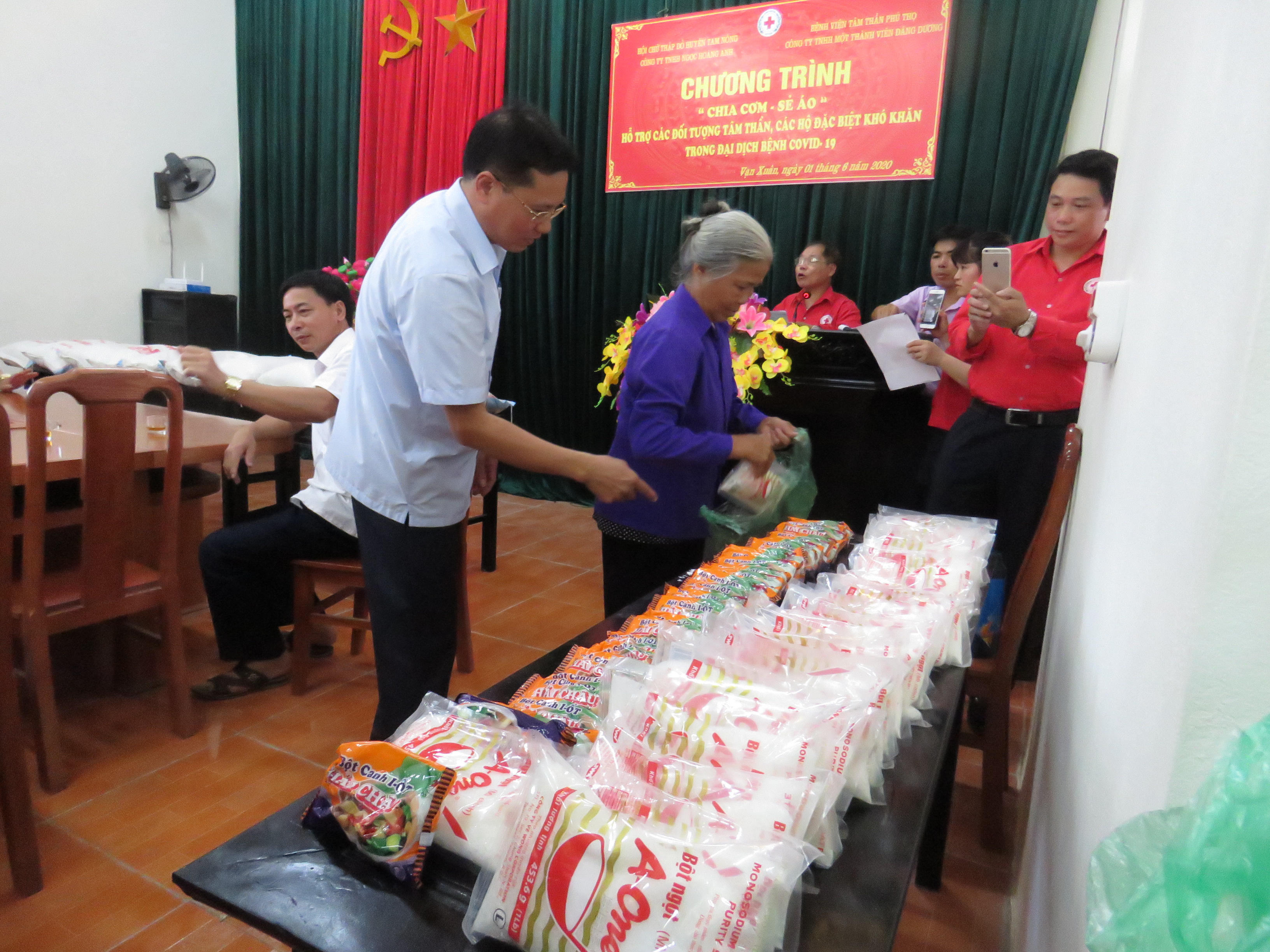Tại xã Vạn Xuân (huyện Tam Nông) dưới sự tham dự của đồng chí Phan Văn Ngọc – Phó Chủ tịch UBND huyện. Bên cạnh việc chương trình “Chia cơm, sẻ áo” hỗ trợ gạo cho những gia đình có người bị bệnh tâm thần, Hội chữ thập đỏ huyện Tam Nông còn triển khai thêm chương trình “Giúp dân đi chợ” hỗ trợ nhiều phần quà vật chất có giá trị khác: dầu ăn, mắm, muối, bột canh, mì chính… cho người dân.