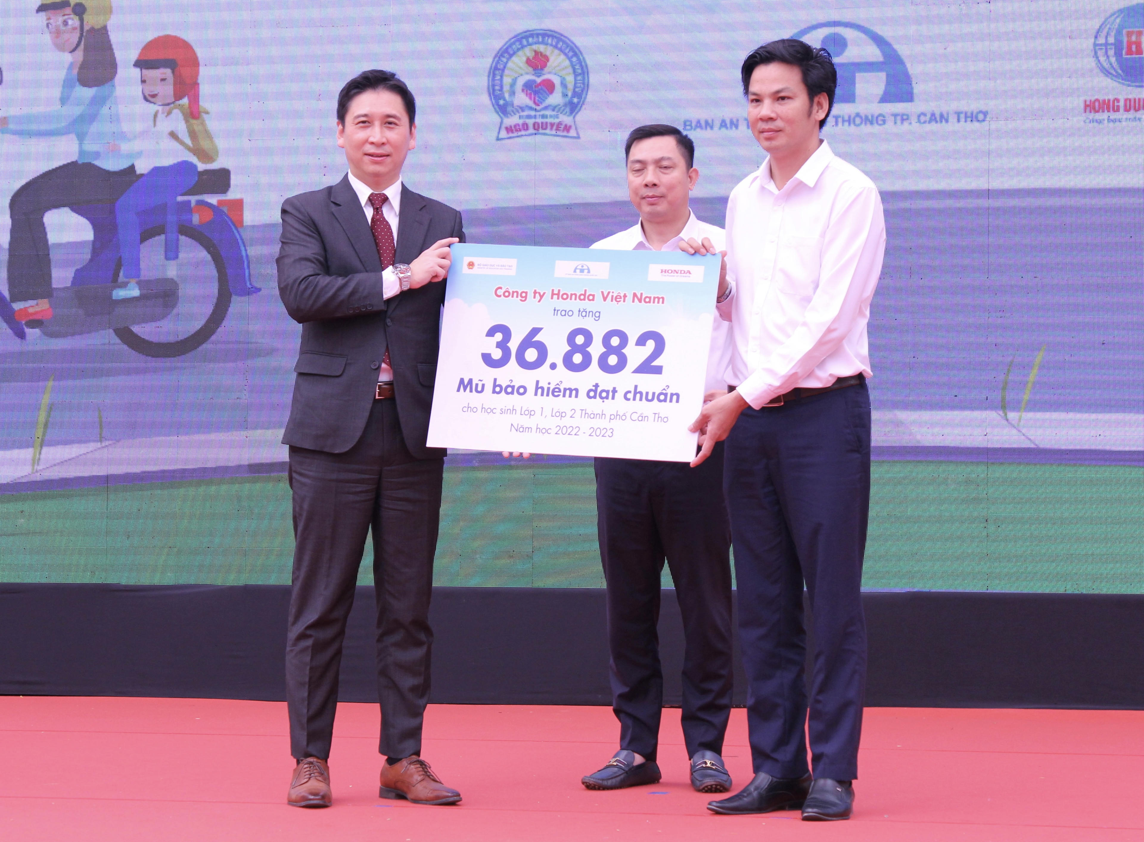 (PLVN) - Ngày 18/3, tại TP Cần Thơ, Công ty Honda Việt Nam đã phối hợp cùng Uỷ ban An toàn giao thông Quốc gia, Ban An toàn giao thông TP và Trường Tiểu học Ngô Quyền tổ chức sự kiện trao tặng mũ bảo hiểm cho học sinh khối lớp 1-2. Cùng với đó là các hoạt động tuyên truyền, phổ biến kiến thức về an toàn giao thông cho học sinh và phụ huynh.