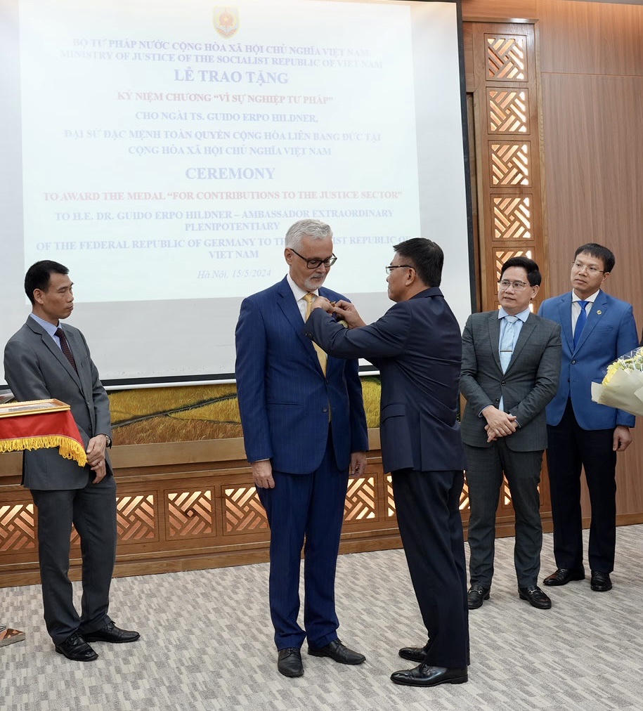 Nhân dịp này, Bộ Tư pháp Việt Nam trân trọng trao tặng Đại sứ Guido Erpo Hildner Kỷ niệm chương “Vì sự nghiệp tư pháp” nhằm thể hiện sự ghi nhận và đánh giá cao đối với những đóng góp của Đại sứ Guido Erpo Hildner trong thời gian qua.