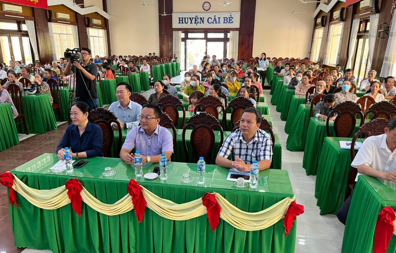 Tham dự lễ trao tặng có bà Võ Thị Chín - Chủ tịch Hội Bảo trợ bệnh nhân nghèo, người khuyết tật và trẻ em mồ côi tỉnh Tiền Giang; bà Trần Thị Quý Mão – Chủ tịch Hội Nạn nhân chất độc da cam/Dioxin tỉnh Tiền Giang; ông Huỳnh Hữu Phúc - Phó Giám đốc BHXH tỉnh Tiền Giang; bà Phạm Thị Tại – Phó Chủ tịch Thường trực UBND huyện Cái Bè và ông Võ Phước Hòa Bình - Phó Trưởng Phòng Lao động - Thương binh và Xã hội huyện Cái Bè cùng đại diện các ban, ngành, đoàn thể các cấp và người dân được hỗ trợ thẻ BHYT.