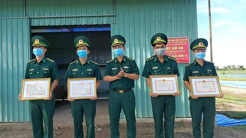 Do tình hình dịch bệnh, tất cả các cán bộ, chiến sỹ nhận thưởng đều phải ứng trực 24/24 giờ, nên Bộ chỉ huy đã đến tận các chốt trao thưởng cho các cá nhân. Tại các chốt biên cương, Phó Chính ủy chúc mừng các cán bộ được xét khen thưởng đợt này. Đồng thời đã thăm hỏi sức khỏe, động viên tinh thần toàn thể anh em trên chốt. Mong rằng thời gian tới, cán bộ, chiến sỹ tiếp tục phát huy những thành tích đạt được trên mặt trận phòng, chống dịch bệnh và tội phạm, tiếp tục giữ gìn an ninh trật tự, an ninh biên giới vì bình yên cuộc sống cho nhân dân.
