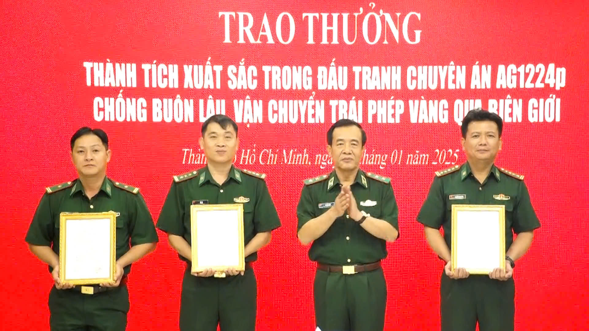 (PLVN) - Sáng 11/1, tại TP HCM, Bộ tư lệnh Bộ đội biên phòng (BĐBP) tổ chức Hội nghị trao thưởng thành tích xuất sắc trong đấu tranh chuyên án chống buôn lậu, vận chuyển trái phép vàng qua biên giới.