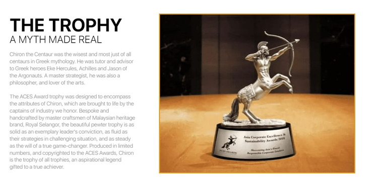 Giải thưởng Doanh nghiệp Xuất sắc & Bền vững Châu Á (ACES) mang khát vọng kinh doanh và lan tỏa các câu chuyện thành công tại Châu Á ra tầm thế giới. Với sự chứng thực mạnh mẽ của bên thứ ba về độ tin cậy và sự xuất sắc, Giải thưởng ACES giúp các thương hiệu, doanh nghiệp đẩy nhanh tốc độ tăng trưởng doanh thu và lợi nhuận đồng thời thể hiện danh tiếng tốt mà các nhà lãnh đạo có tầm nhìn xa đã xây dựng trong những năm qua.