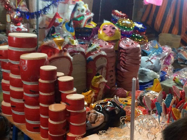 Vẫn là những món đồ chơi quen thuộc đối với trẻ nhỏ. Từ trống, đầu lân, mặt nạ... không chỉ cuốn hút trẻ nhỏ mà gợi lại kỷ niệm cả những bậc phụ huynh.