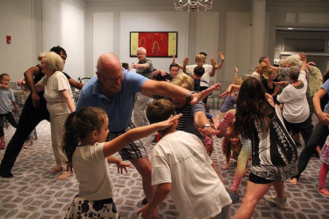 Khi các bé và các cụ chơi với nhau, tiếng cười luôn vang lên trong suốt thời gian họ ở chung với nhau. Họ ôm hôn, cầm tay nhau cùng hát hò, tập thể dục, đọc truyện… Các cụ luôn tìm cách để các bé phát huy khả năng của chúng.