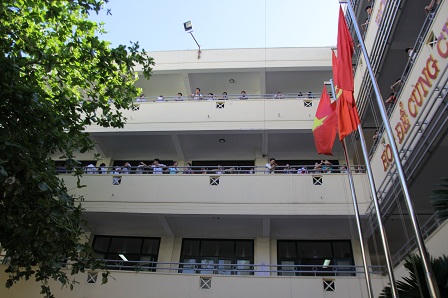 Đúng 8h, các thí sinh được giám thị điểm danh và gọi vào phòng thi.