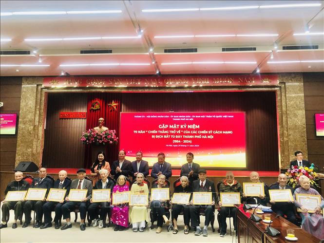 Sáng 29/11, Thành ủy, HĐND, UBND, Ủy ban MTTQ Việt Nam thành phố Hà Nội tổ chức gặp mặt kỷ niệm "70 năm - chiến thắng trở về" của các chiến sỹ cách mạng bị địch bắt tù đày thành phố Hà Nội (1954-2024).