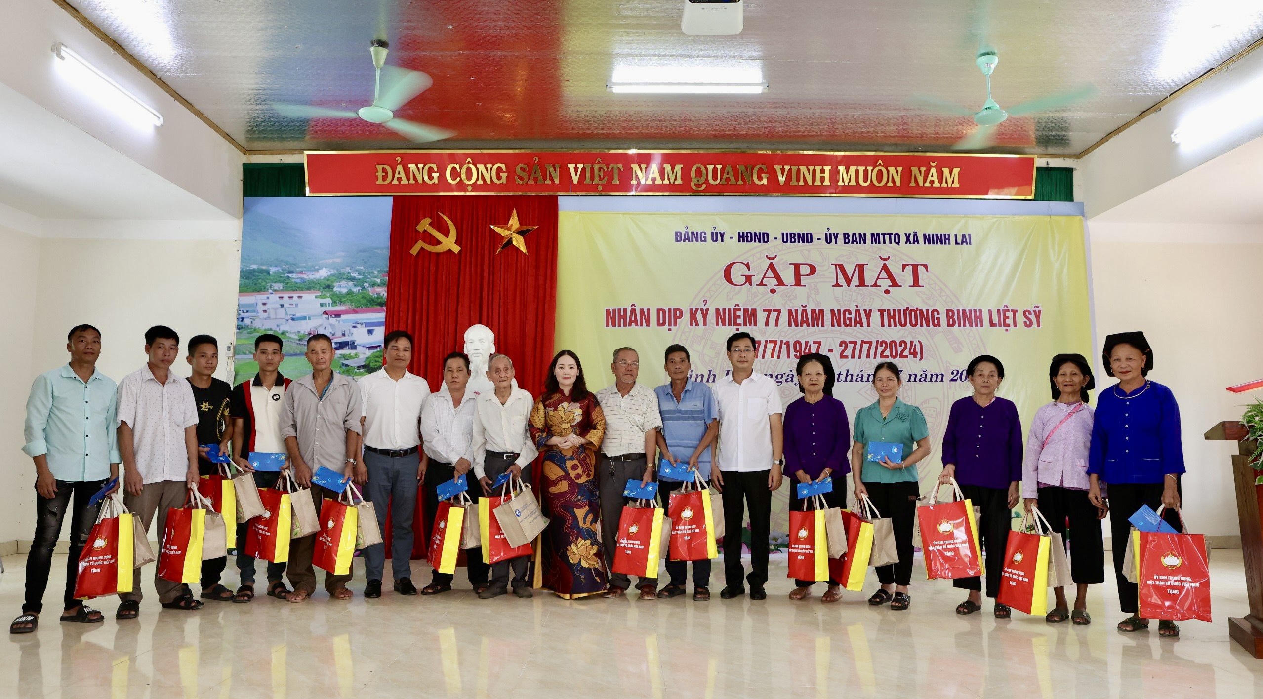 Tại chương trình, Ủy ban Trung ương MTTQ Việt Nam và các nhà tài trợ đã trao tặng 53 suất quà cho người có công, gia đình chính sách trên địa bàn xã Ninh Lai. Tổng giá trị các phần quà trên là 250 triệu đồng.