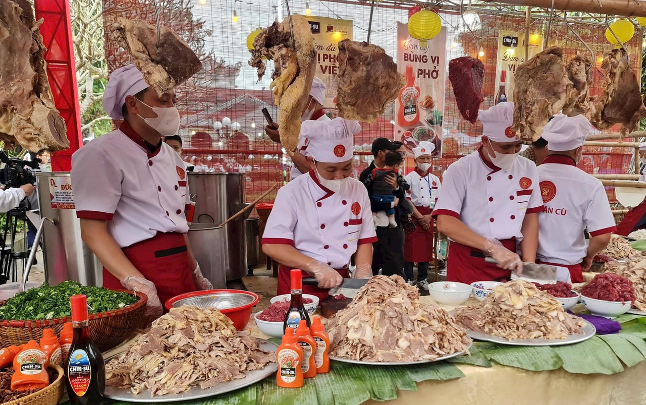 Các nghệ nhân làng Vân Cù xã Đồng Sơn huyện Nam Trực tỉnh Nam Định đang chế biến món Phở bò tại Festival Phở 2024. |