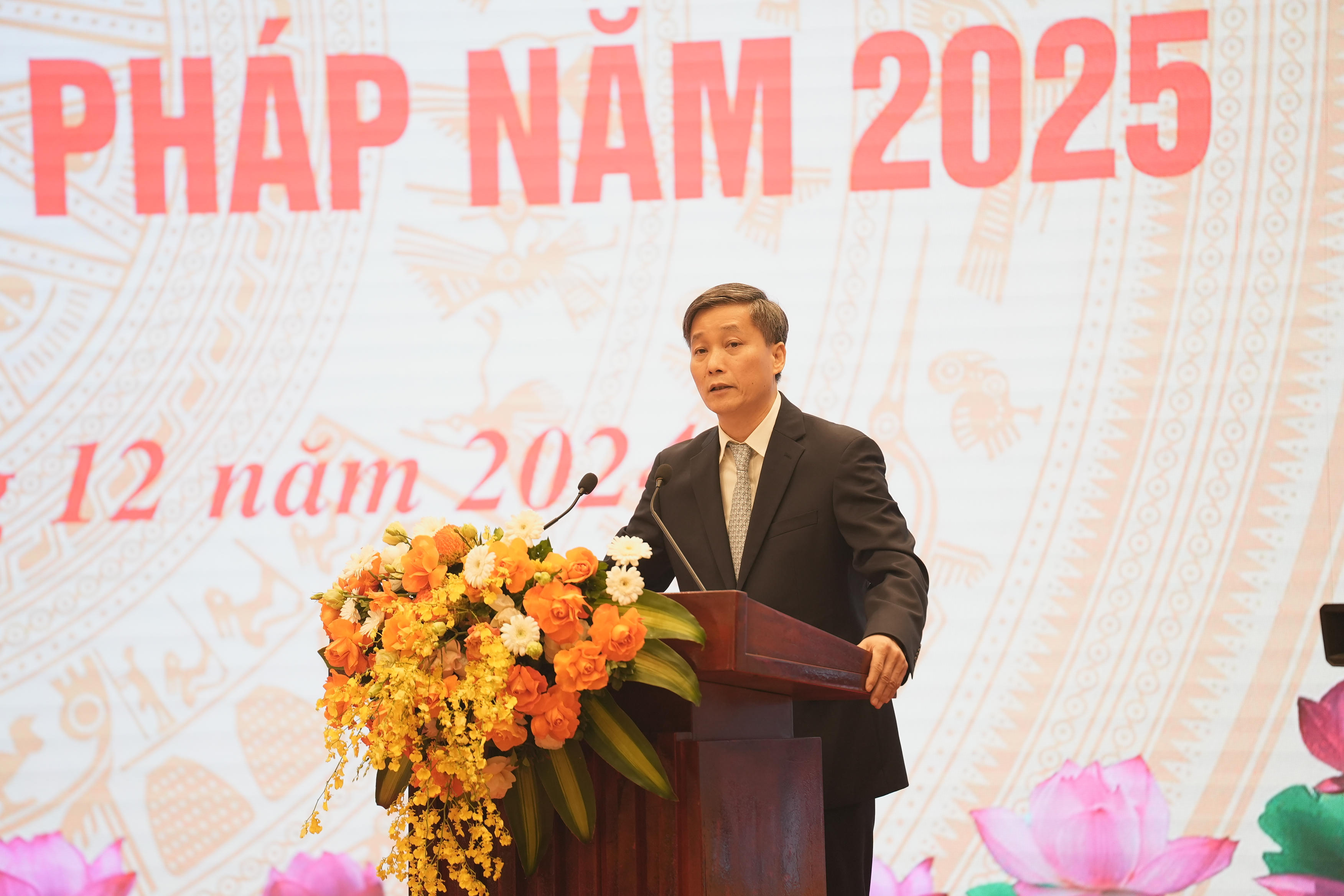 (PLVN) - Sáng 17/12, Bộ Tư pháp tổ chức Hội nghị toàn quốc triển khai công tác tư pháp năm 2025 với hình thức trực tiếp và trực tuyến. Đến dự và phát biểu chỉ đạo Hội nghị có đồng chí Lê Thành Long, Ủy viên Ban Chấp hành Trung ương Đảng, Phó Thủ tướng Chính phủ.