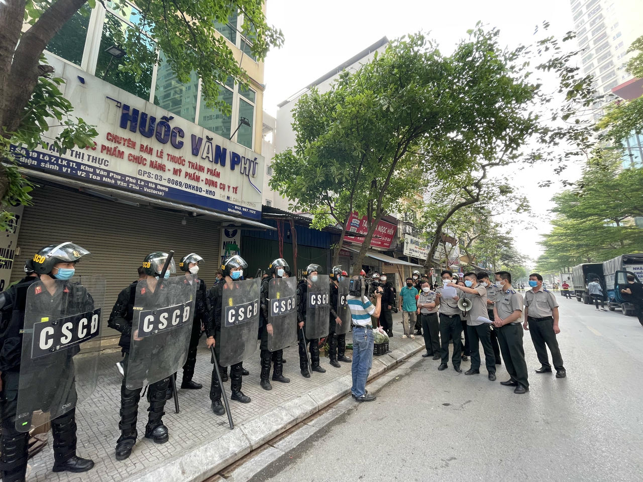 Chấp hành viên Cục THADS Hà Nội phối hợp cơ quan chức năng tổ chức thi hành án. |