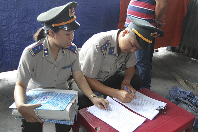 Chấp hành viên Cục THADS Khánh Hòa làm nhiệm vụ. |