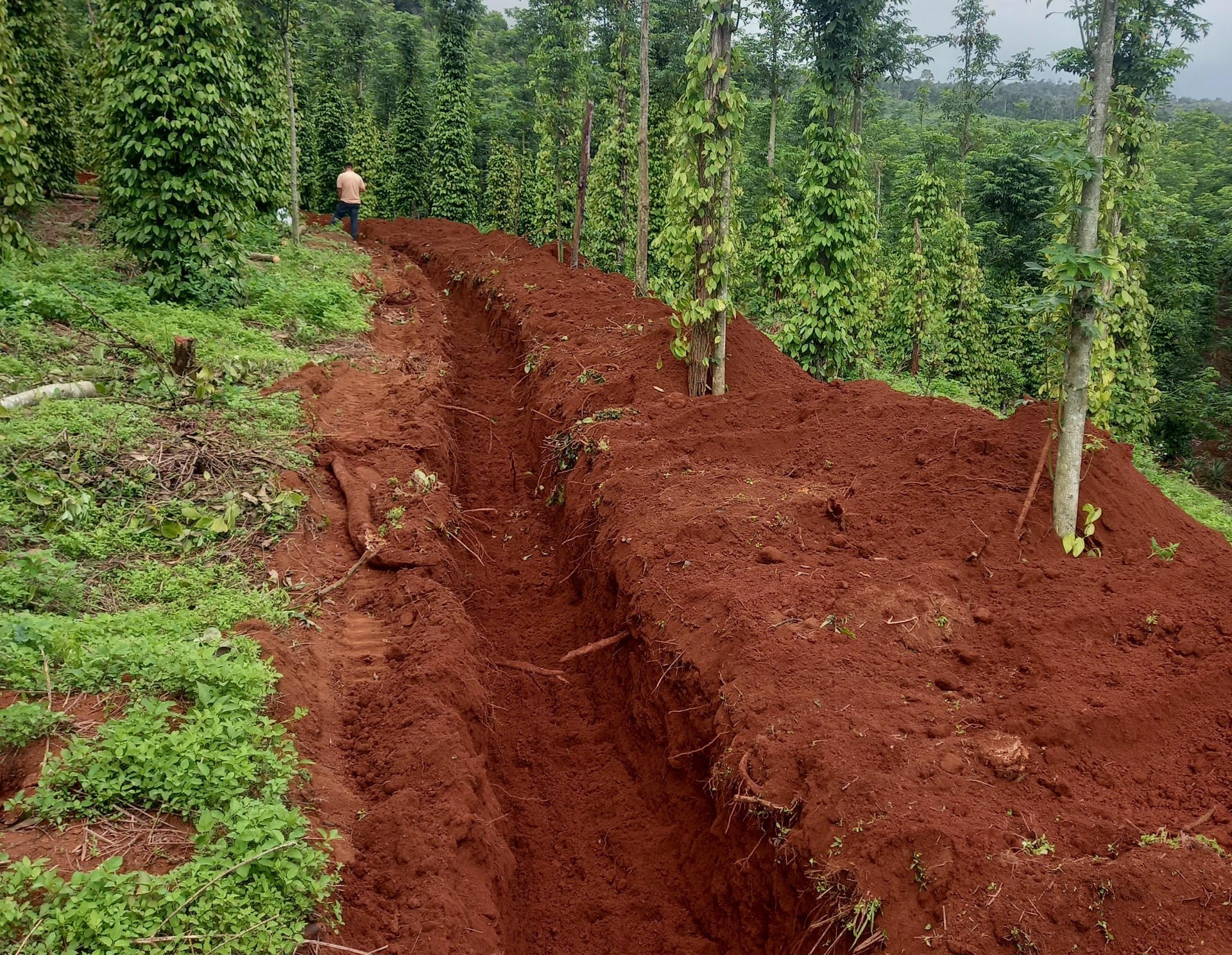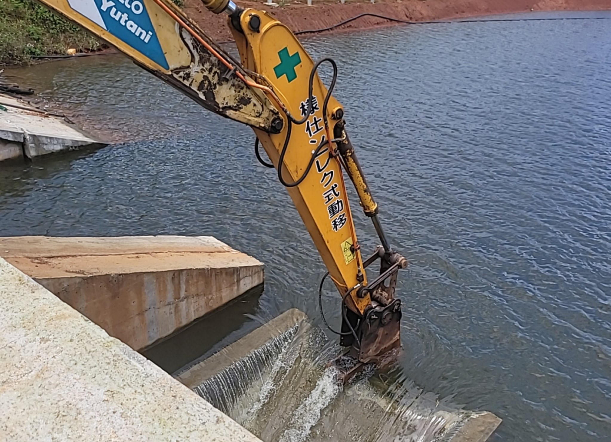 Đơn vị đồng thời thực hiện khoan nhiều điểm khoan ngang vào chân khối trượt ở vai đập, nhằm tạo đường dẫn gom lượng nước ngầm từ bên trong đưa ra ngoài theo đường khoan để giảm bớt tốc độ thấm nước làm nhão khối đất bazan của cung trượt.