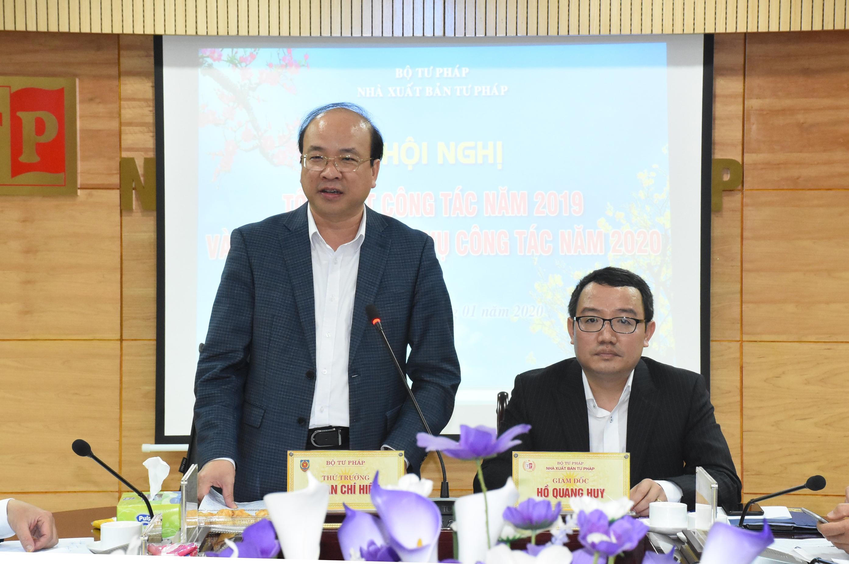 Phát biểu chỉ đạo tại Hội nghị, Thứ trưởng Phan Chí Hiếu ghi nhận và biểu dương những kết quả công tác mà tập thể NXB Tư pháp đã đạt được trong năm 2019. Thứ trưởng nhấn mạnh công tác biên tập và phát hành được xác định là khâu then chốt, quyết định hiệu quả sản xuất, kinh doanh của NXB Tư pháp. Do đó, Thứ trưởng đề nghị NXB tiếp tục nghiên cứu, xây dựng và trình Bộ trưởng ban hành các Đề án mới về tổ chức và hoạt động của NXB; bám sát các văn bản hướng dẫn thi hành Luật Hộ tịch để chủ động chuẩn bị các loại giấy tờ, biểu mẫu sổ hộ tịch cho các cơ quan tư pháp địa phương với chất lượng tốt nhất.