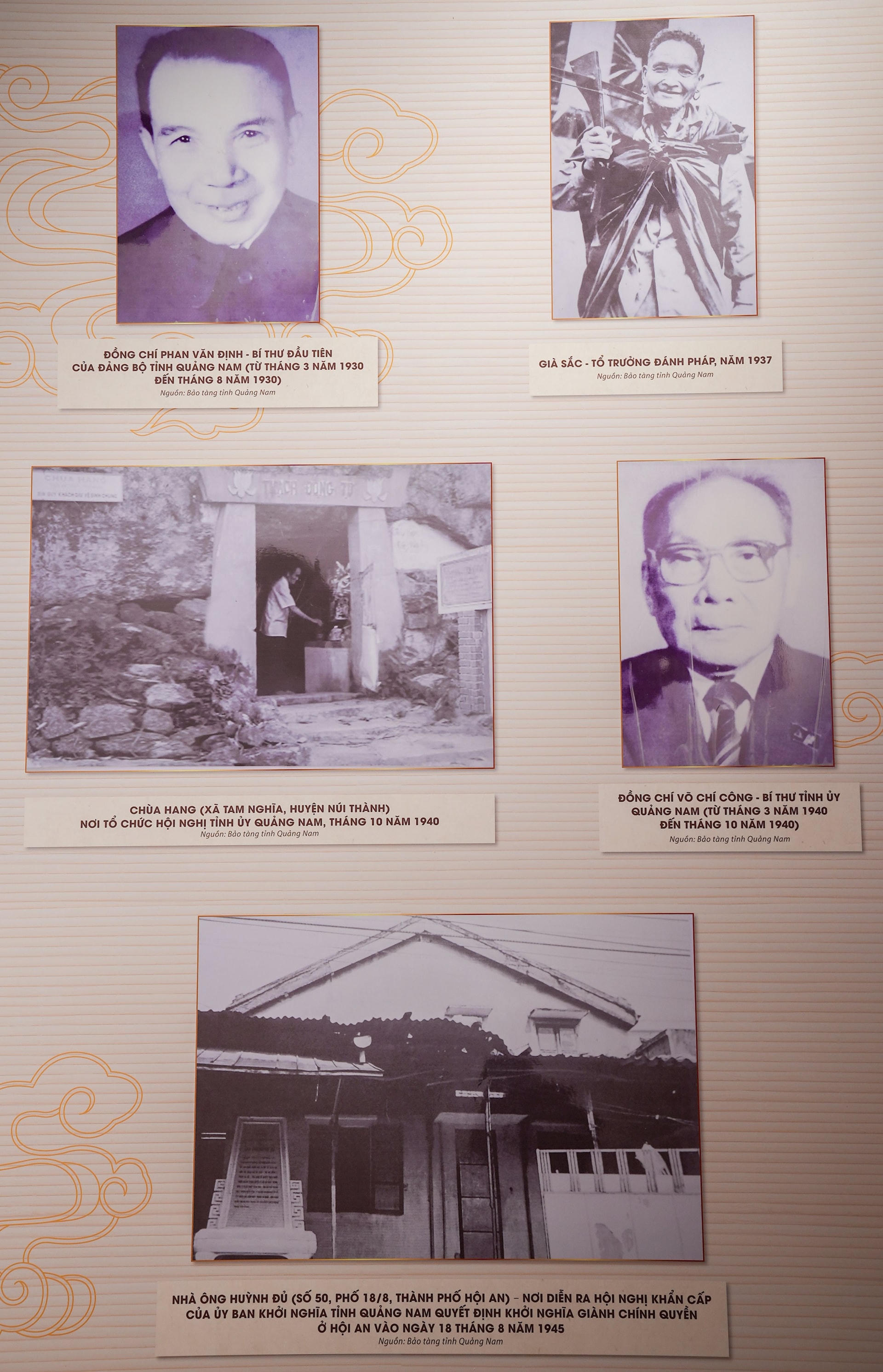 Hình ảnh về các đồng chí lãnh đạo Đảng, Nhà nước quê Quảng Nam và lãnh đạo tỉnh qua các thời kỳ; các địa danh lịch sử trong những năm kháng chiến chống Pháp. |