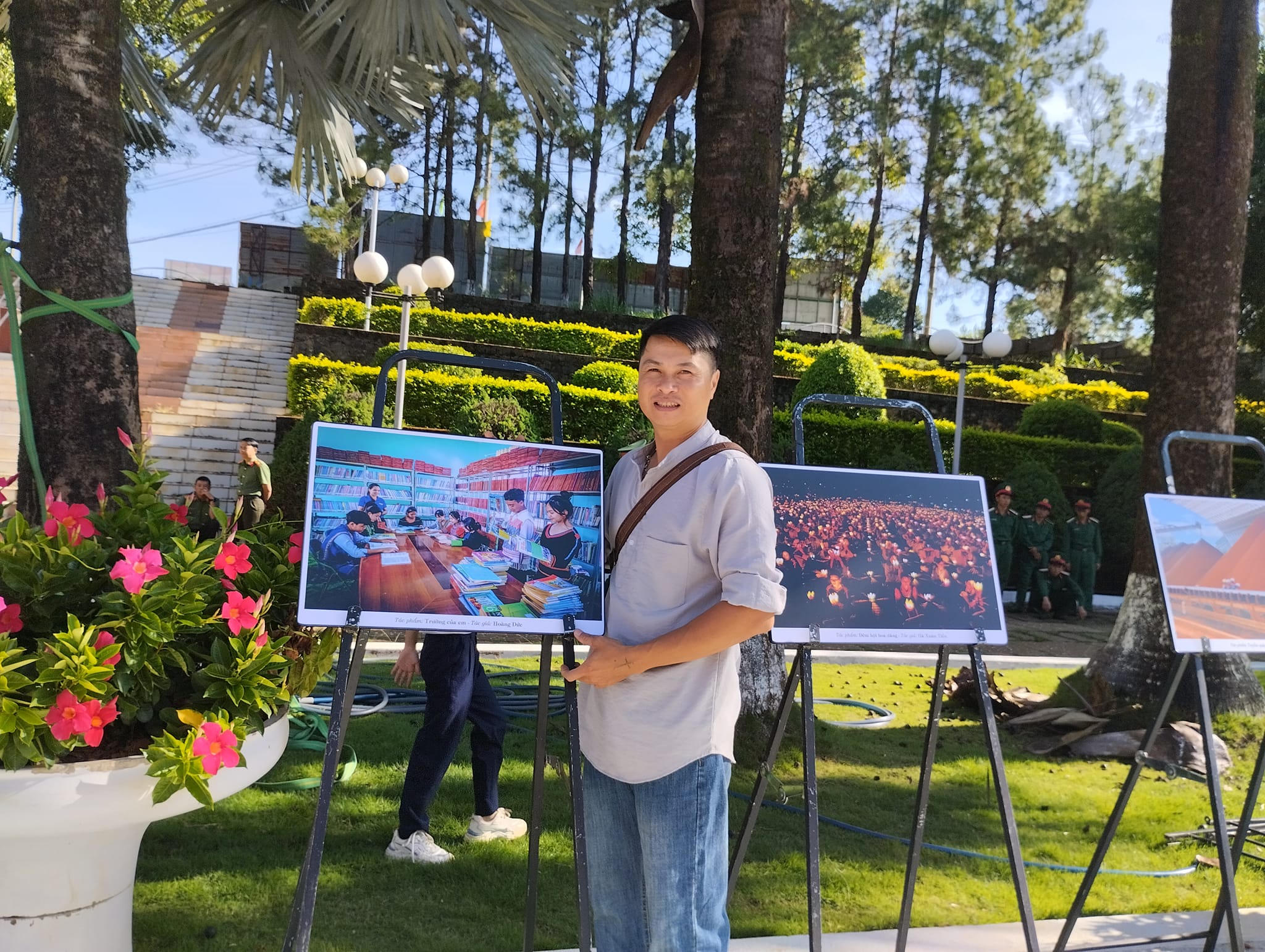 Tác giả Đặng Thọ cùng tác phẩm tham dự. Ảnh FBNV |