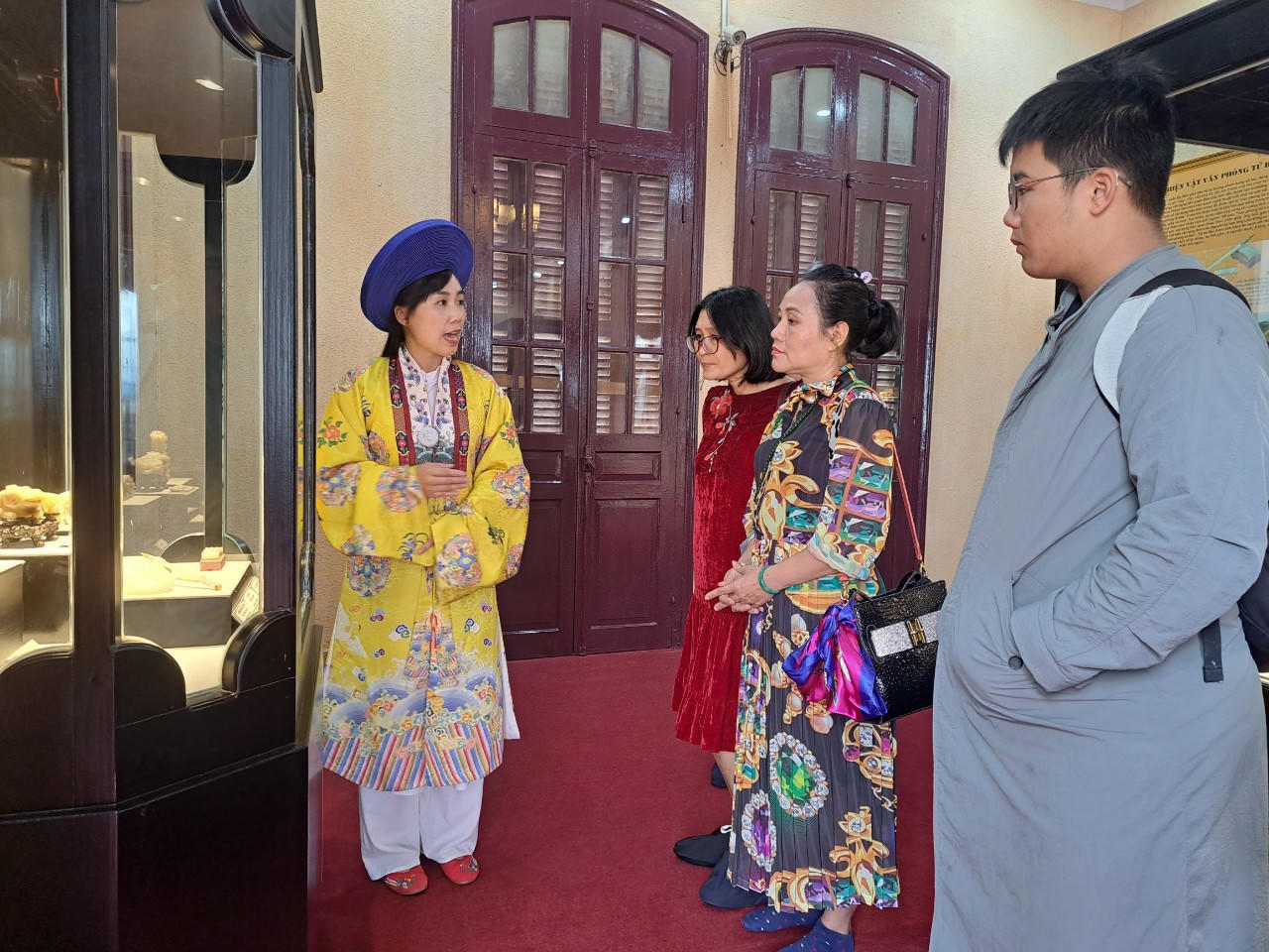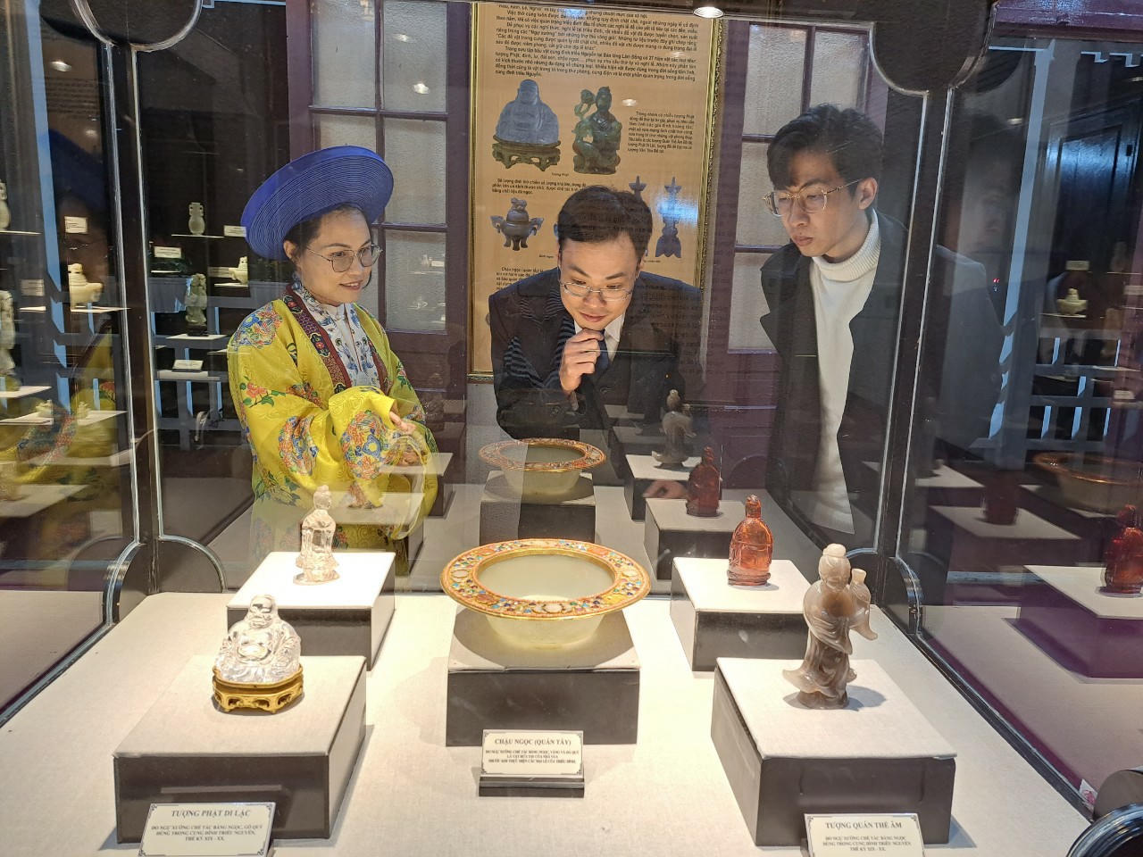 Du khách tham quan các hiện vật cung đình triều Nguyễn. |