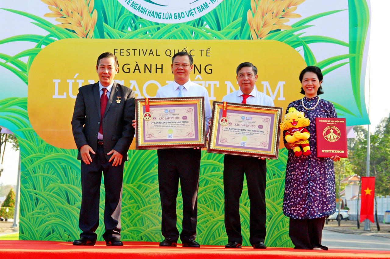 Tổ chức Kỷ lục Việt Nam đã trao Bằng kỷ lục cho Không gian triển lãm, sắp đặt con đường lúa gạo, chủ đề “Hành trình ngàn năm lúa gạo Việt” dài nhất. |