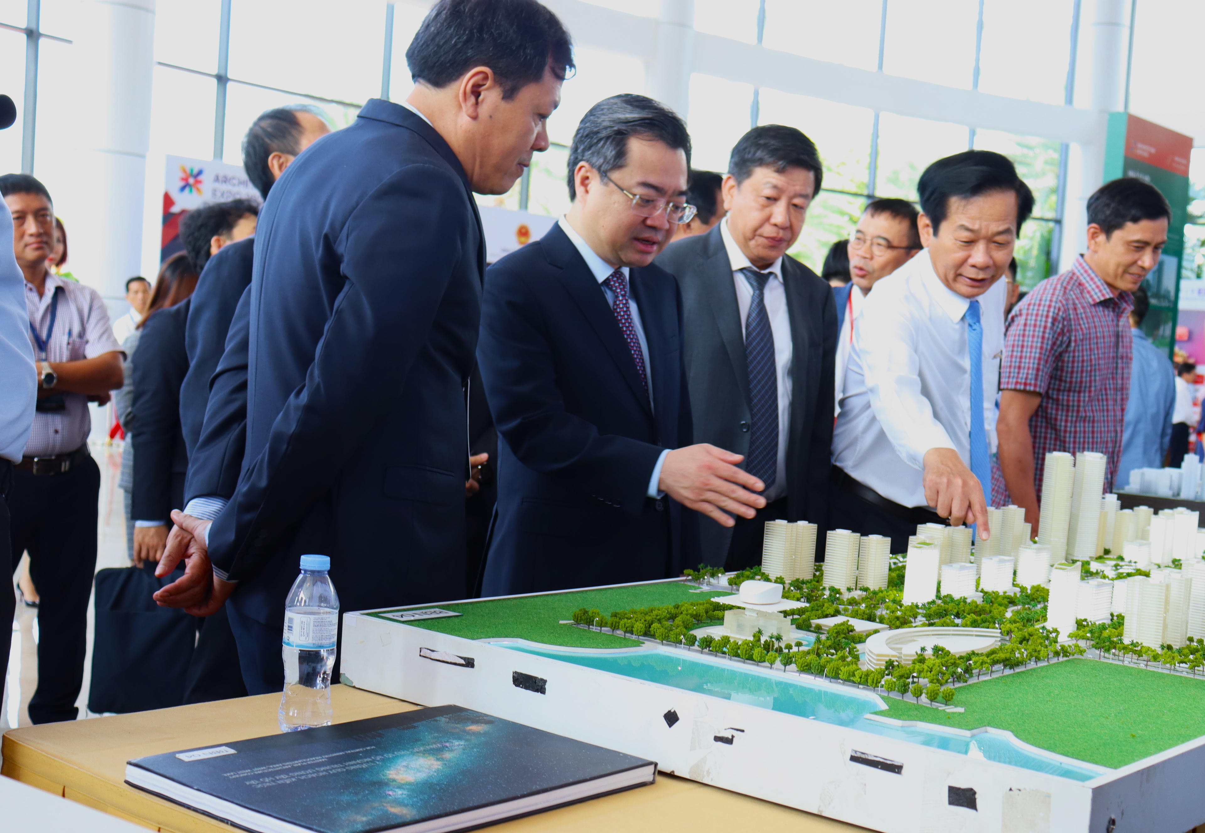 Bộ trưởng Bộ Xây dựng Nguyễn Thanh Nghị cùng các đại biểu tham quan triển lãm |