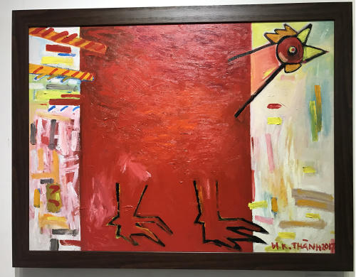 Trong số các tác phẩm tham gia, ông Vi Kiến Thành có một tác phẩm tranh sơn dầu được đặt tên là "Gà". Bức tranh mang ý nghĩ vô cùng sâu sắc khi hình tượng gà trống biểu tượng của năm Đinh Dậu đầy oai hùng và mạnh khỏe đang dần dần lộ diện sau ánh sáng mặt trời như hứa hẹn một năm 2017 đất nước sẽ mạnh mẽ với những bước đi và chuyển mình để hướng về phía mặt trời, về phía phát triển và hưng thịnh.