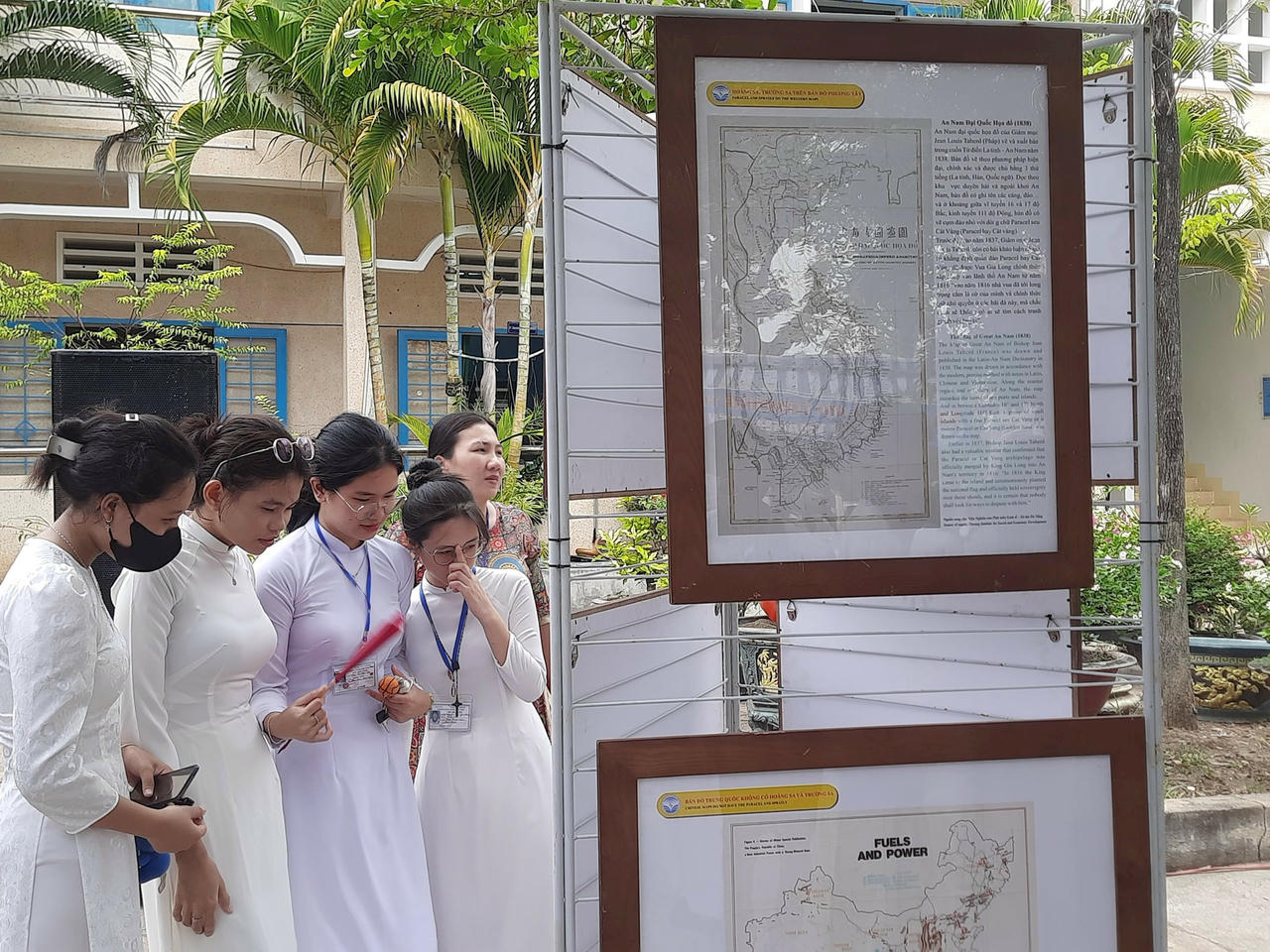 Tại triển lãm, học sinh, giáo viên được giới thiệu và xem các tư liệu bản đồ, văn bản, ấn phẩm khẳng định chủ quyền của Việt Nam đối với hai quần đảo Hoàng Sa, Trường Sa. Thêm vào đó, báo cáo viên của Bộ Chỉ huy Bộ đội Biên phòng tỉnh giới thiệu tiềm năng và lợi thế của biển, đảo Việt Nam trong phát triển kinh tế biển; giao lưu, giải đáp câu hỏi của các học sinh liên quan đến chủ quyền biển, đảo của Việt Nam.