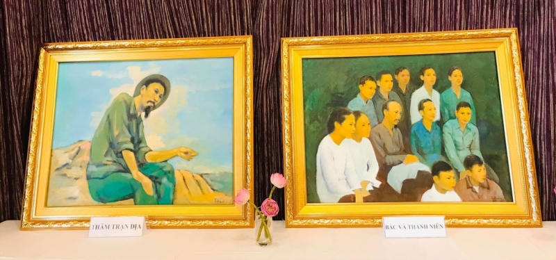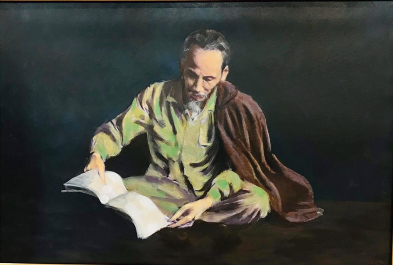 Mỗi tác phẩm trong 13 bức tranh sơn dầu khổ lớn của họa sĩ Thái Hòa trưng bày tại triển lãm “Tháng Năm nhớ Bác” đều ghi dấu những sự kiện lịch sử trong cuộc đời hoạt động cách mạng của Chủ tịch Hồ Chí Minh và lịch sử cách mạng Việt Nam.