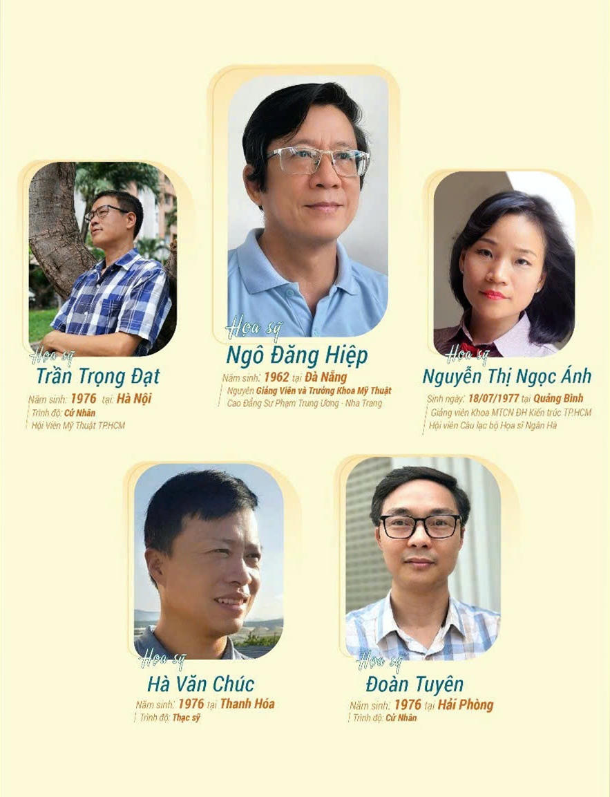 Trong quá khứ, họa sĩ Ngô Đăng Hiệp từng là giảng viên trường Sư phạm, còn các hoạ sĩ Đoàn Tuyên, Hà Văn Chúc, Nguyễn Thị Ngọc Ánh, Trần Trọng Đạt là sinh viên của khóa sư phạm mỹ thuật.