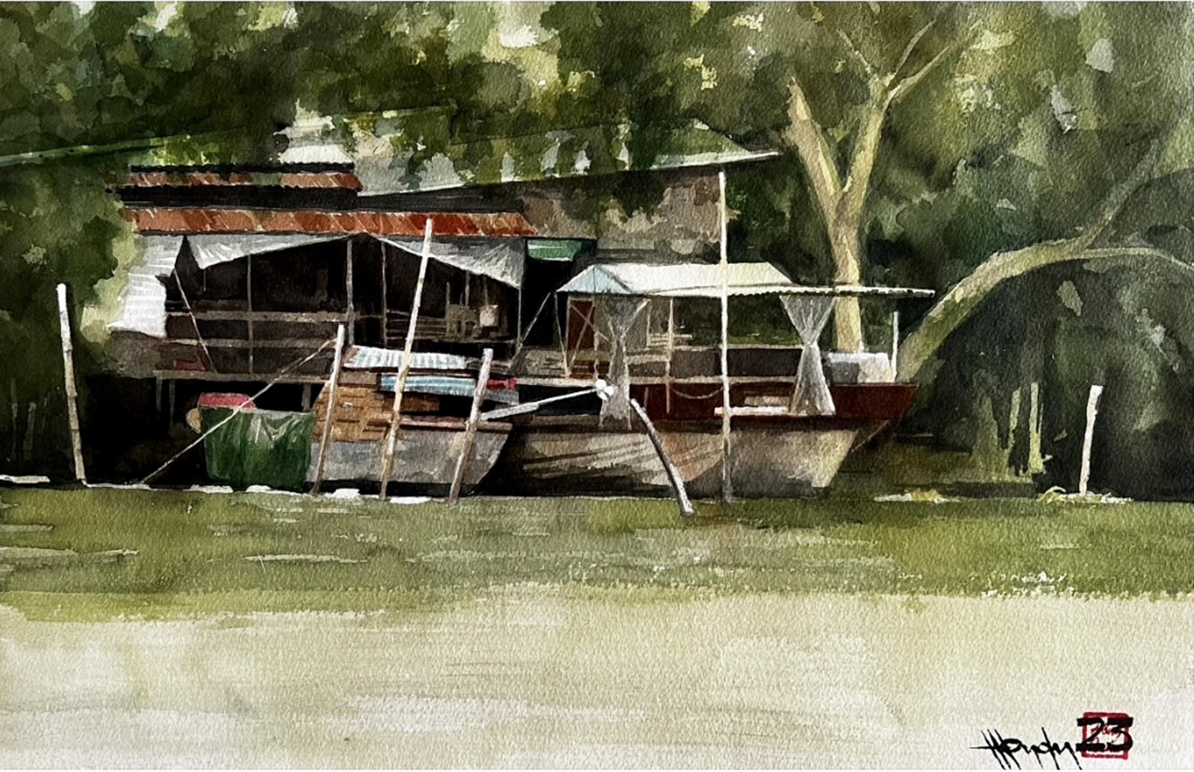 Bức “Nhà ven sông Hậu”. Ảnh: BTC |
