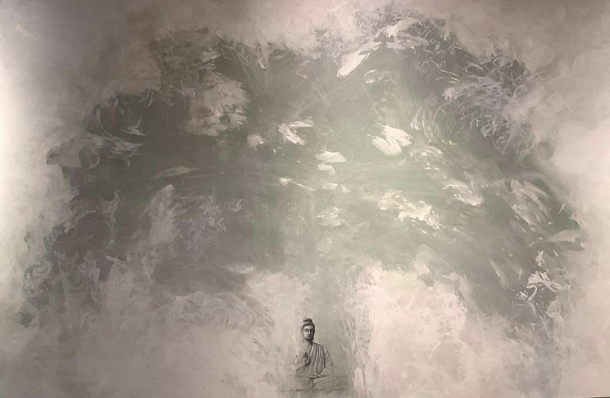 Tác phẩm đặt chân dung tượng Đức Phật trên nền tranh trừu tượng, đưa thực vào trừu tượng. Tư duy logic biến mất, không còn tại sao, thế này thế kia. Đó là trực giác, trực cảm. Bức tranh có giá trị rất cao 700 triệu đồng, dự kiến sẽ đóng góp rất lớn cho chương trình từ thiện nếu đấu giá thành công.