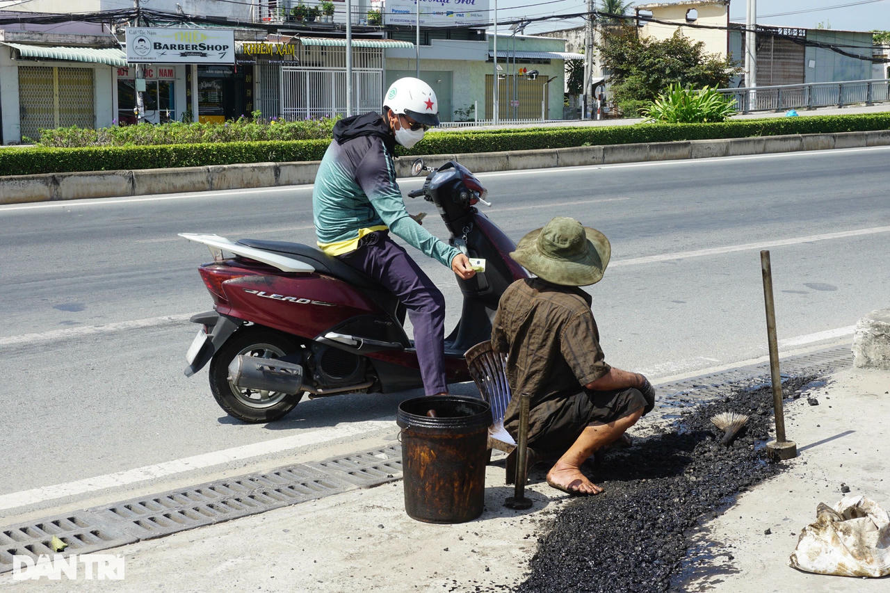 Nhiều năm nay, hình ảnh ông Nguyễn Hồng Dân (thường gọi là ông Ba, 54 tuổi, ngụ phường Trà Nóc, quận Bình Thủy, TP Cần Thơ) sau khi bán hết tập vé số lại ngồi cặm cụi vá đường đã trở nên quen thuộc với người dân xứ Tây Đô. Sáng ra đi làm đã thấy, trưa đi làm về vẫn còn thấy, ông Ba vẫn ngồi miệt mài đầm đầm, gõ gõ mặc kệ nắng nôi, mặc kệ bụi đường, mặc kệ luôn người qua kẻ lại.