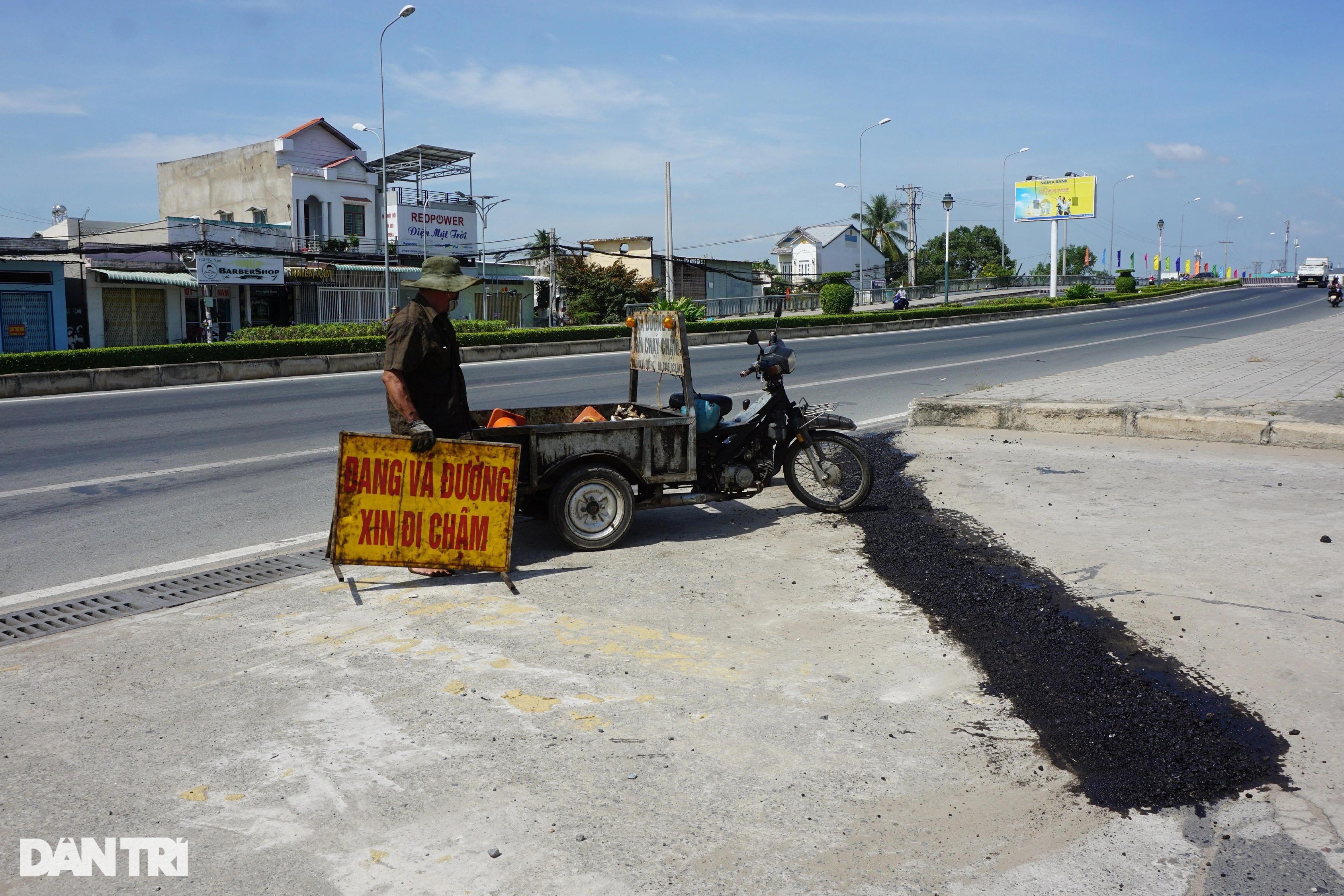 Khi ông Ba dọn dụng cụ chuẩn bị về cũng là lúc đoạn đường đã được sửa lành như mới (Ảnh: Nguyễn Cường).
