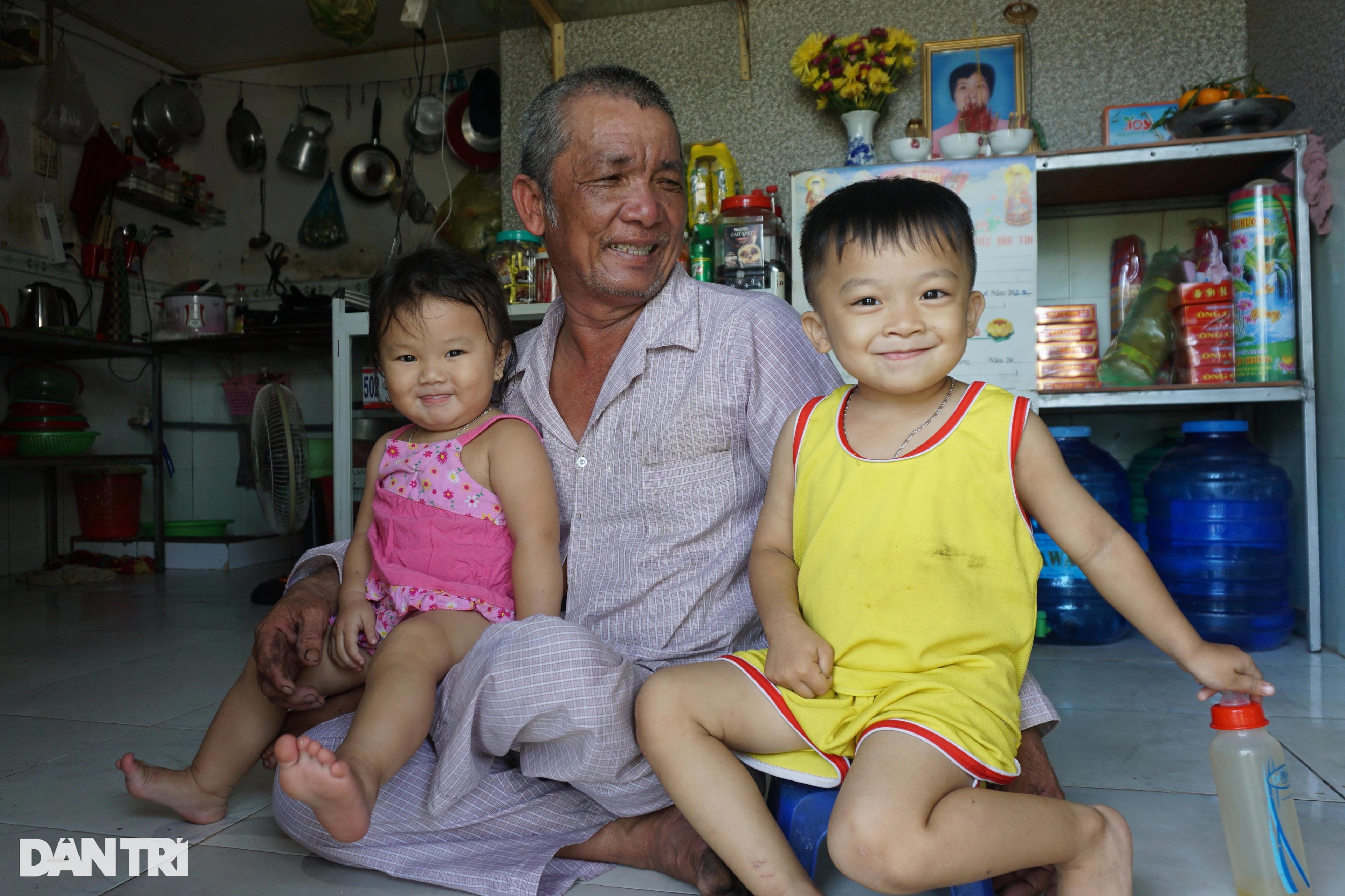 Sau những giờ vất vả vá đường, ông Ba trở về nhà vui vầy bên con cháu (Ảnh: Nguyễn Cường).