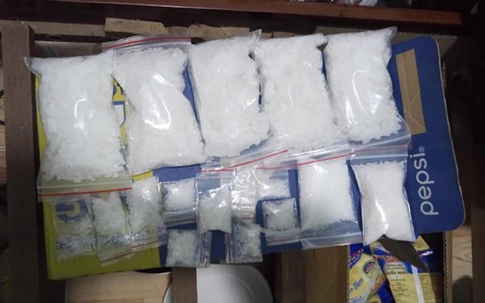 Khám xét nơi ở của vợ chồng Hải, lực lượng công an thu giữ 900 gam ma túy tổng hợp dạng đá, 350 gam ma túy dạng khay, 150 viên thuốc lắc, 35 gam heroin cùng nhiều tang vật liên quan. Tổng số lượng ma túy các loại bị thu giữ lên đến 1,4kg.