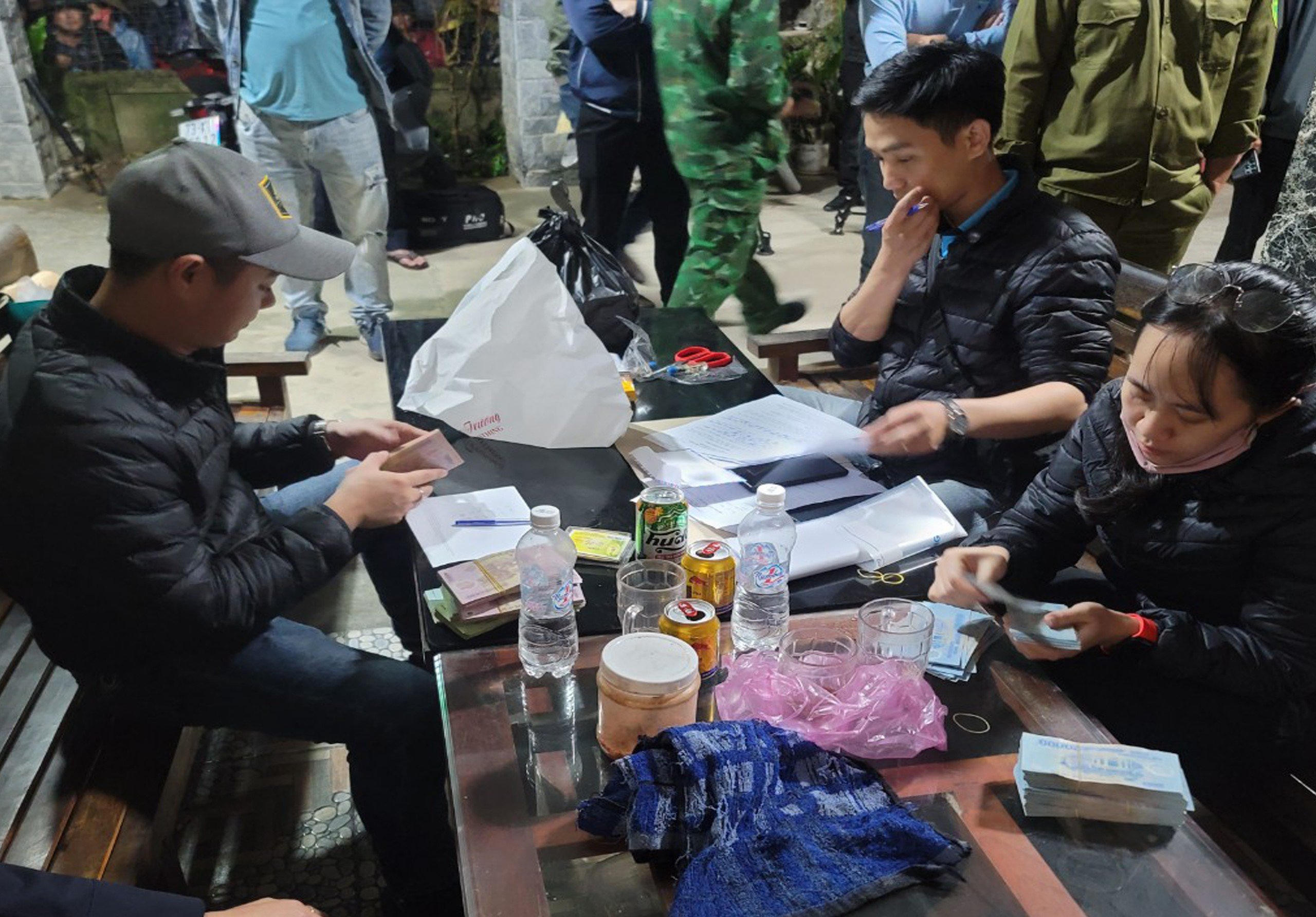 Các lực lượng phối hợp thi hành lệnh khám nhà đối tượng trong đường dây. |