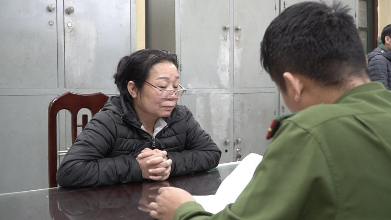 Đối tượng Phùng Thị Mỹ tại cơ quan công an. |