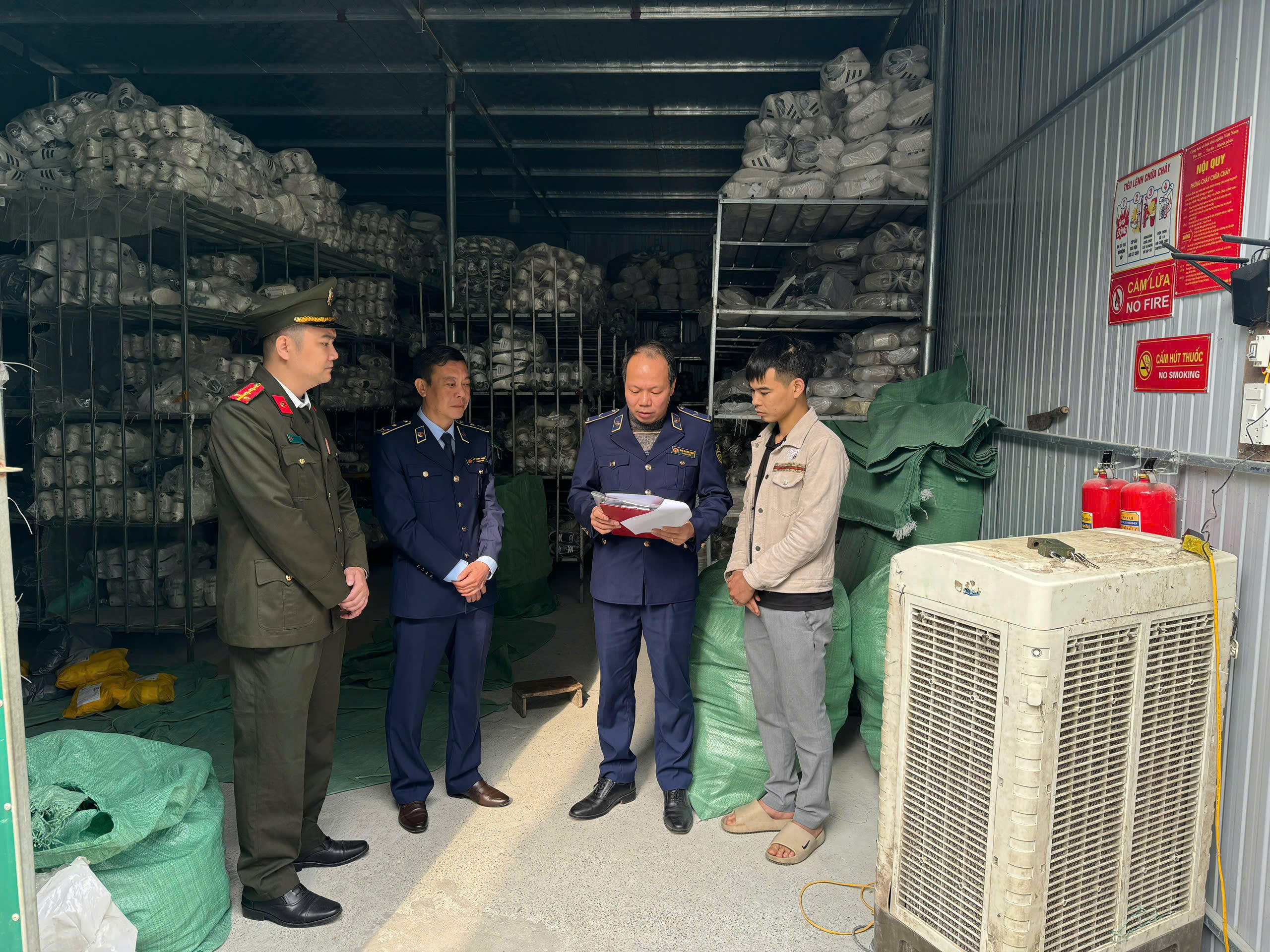 Tại thời điểm kiểm tra, chủ kho hàng là ông Nguyễn Đức Tình không xuất trình được hóa đơn, chứng từ chứng minh nguồn gốc hợp pháp của số hàng hóa trên.